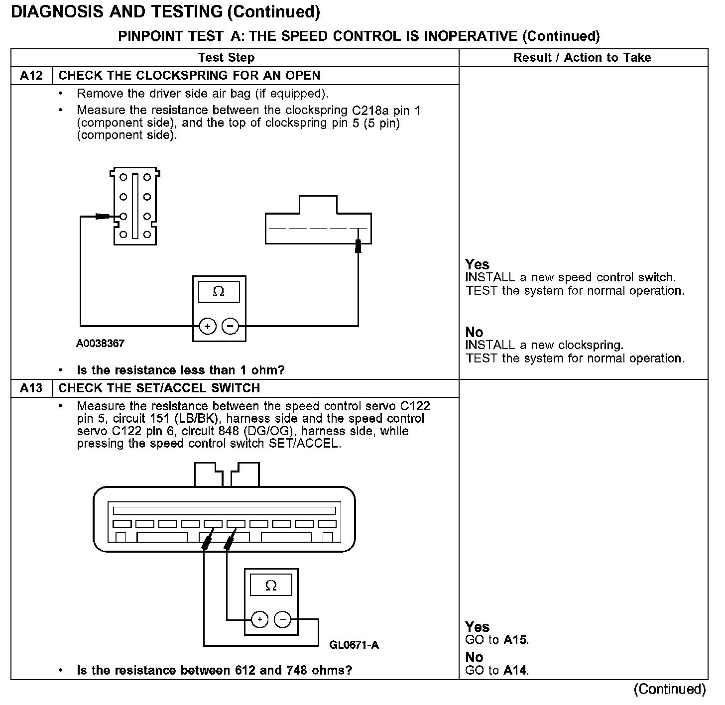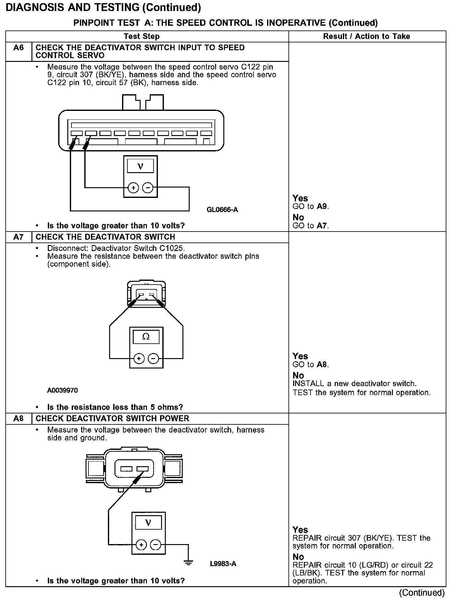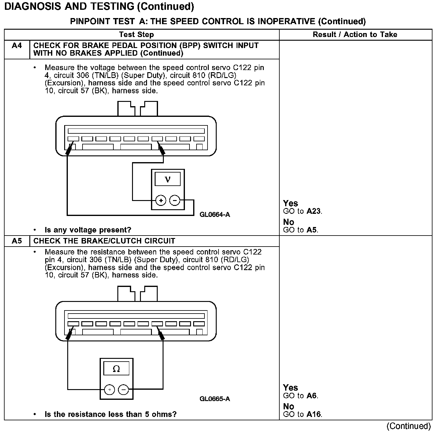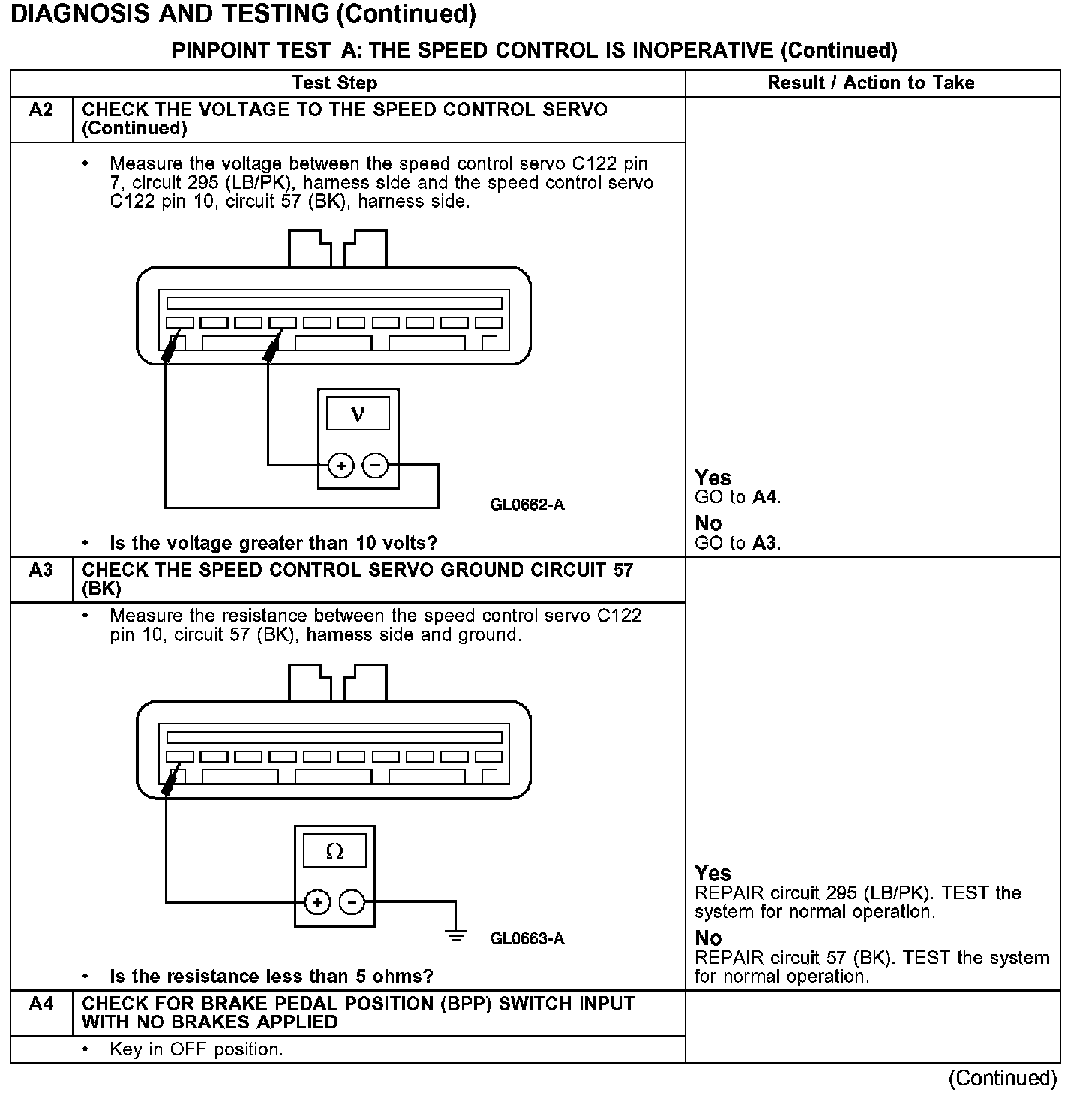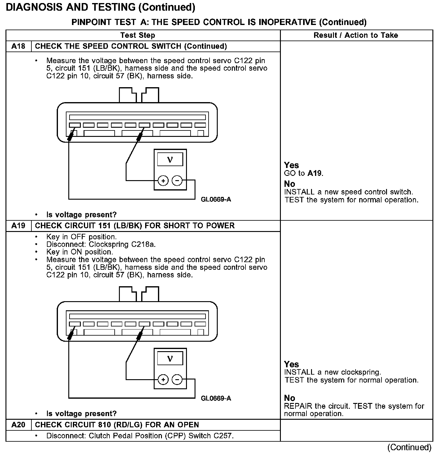 PINPOINT TEST A: THE SPEED CONTROL IS INOPERATIVE