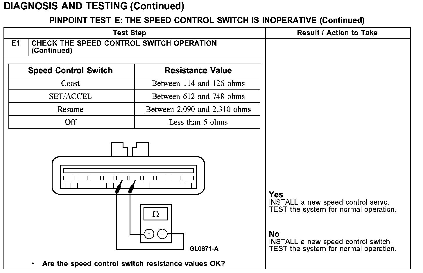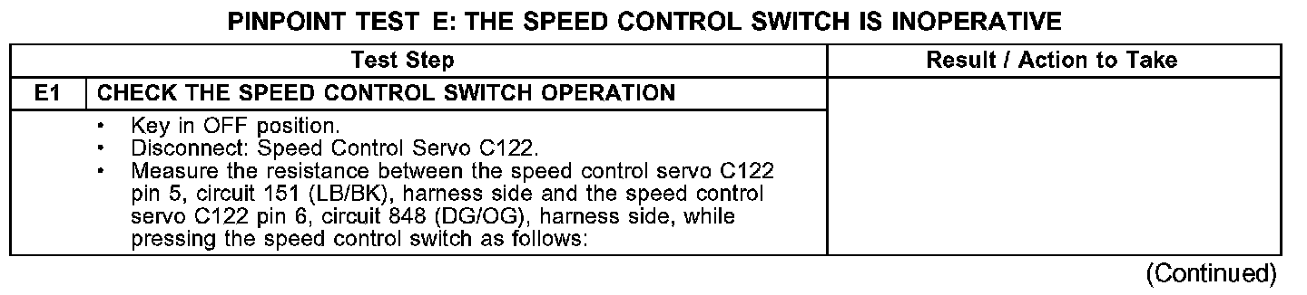 PINPOINT TEST E: THE SPEED CONTROL SWITCH IS INOPERATIVE