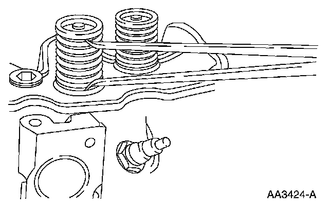 ^ Turn the valve spring and observe the space between the top of the valve spring and the square. Install a new valve spring if out of square.