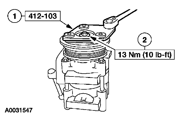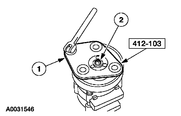 2. CAUTION: Do not use air tools. The A/C clutch field coil can be easily damaged.
