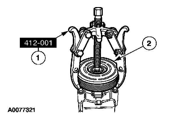 2 Place the special tool on the A/C clutch field coil.