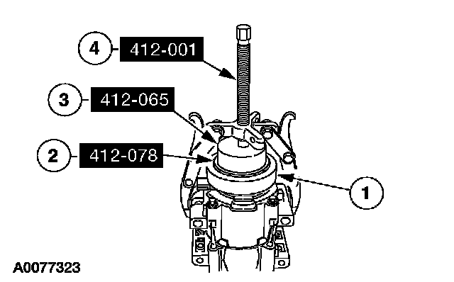 4 Use the special tool to install the A/C clutch field coil until bottomed completely against the A/C compressor.