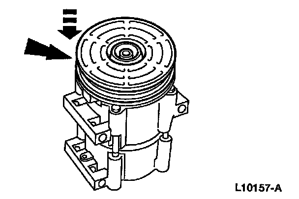 3. NOTE: The A/C clutch pulley is a tight fit on the A/C compressor head; it must be correctly aligned during installation.