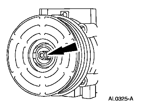 1 Install the special tool on the nose opening of the A/C compressor.