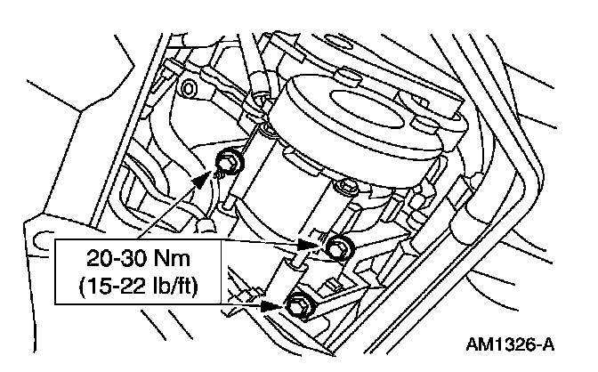 10. NOTE: The lower rear bolt must be removed with the A/C compressor.