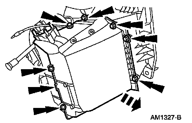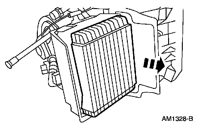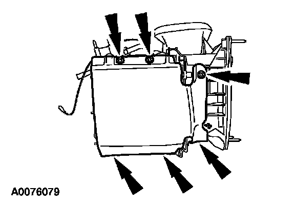 6. Remove the screws and remove the evaporator core housing support bracket.