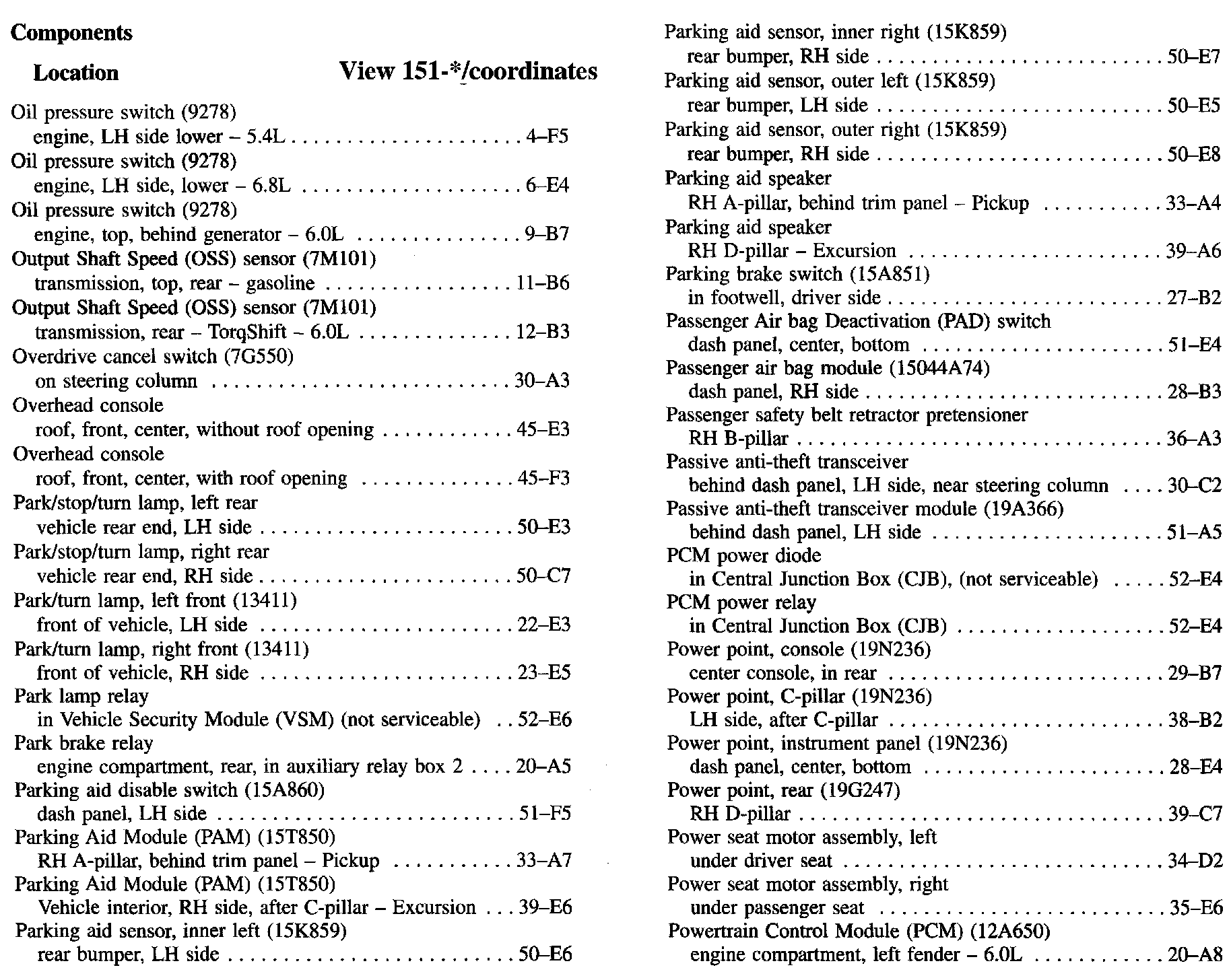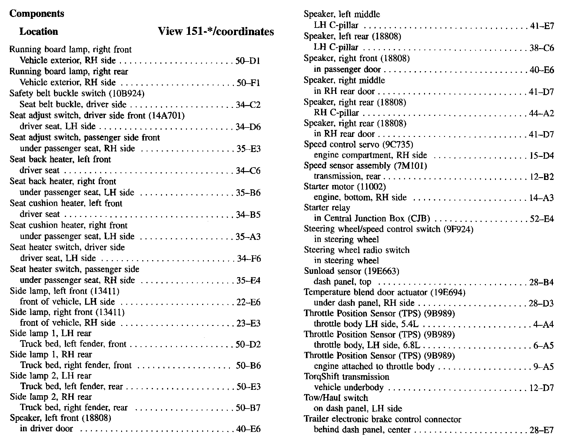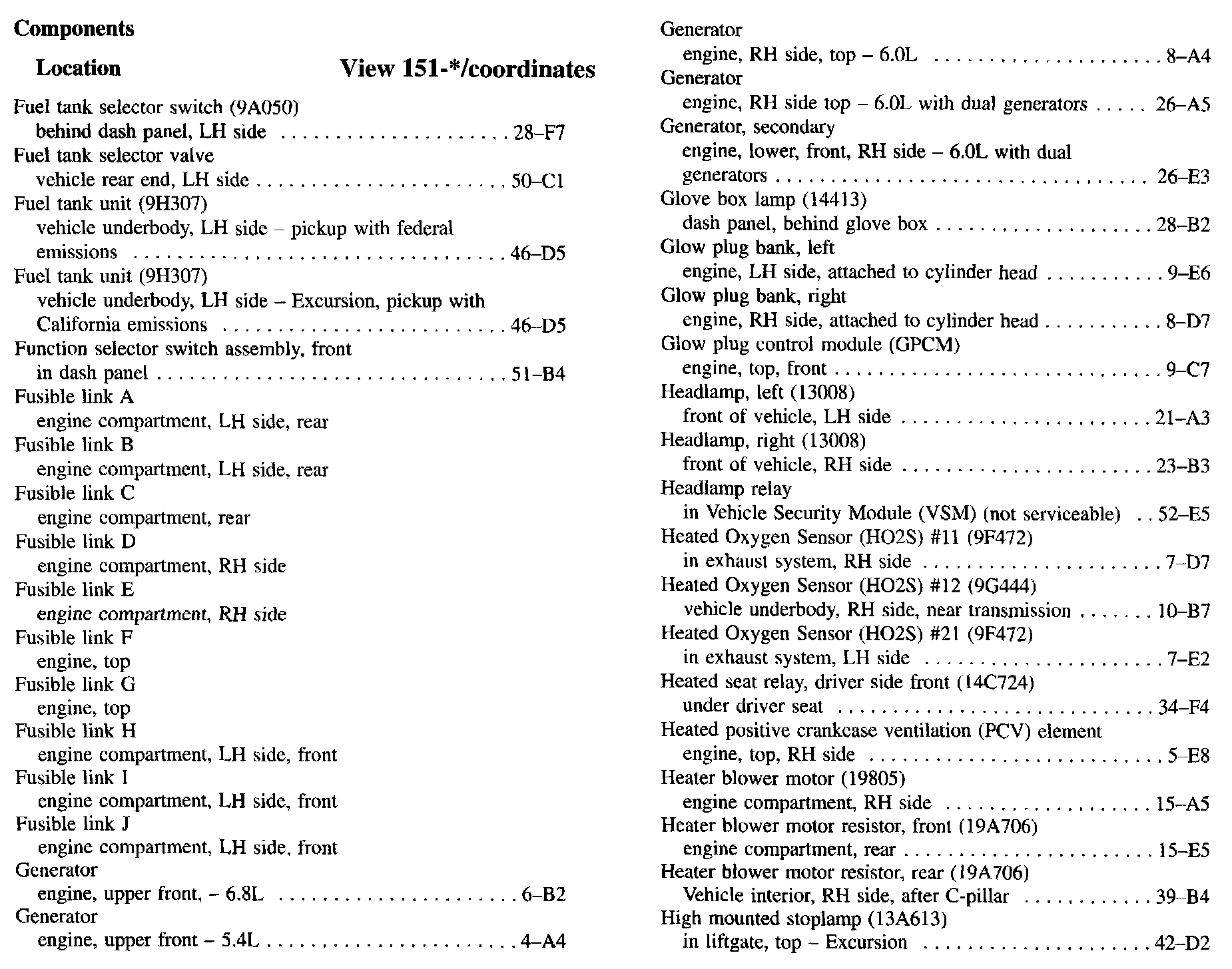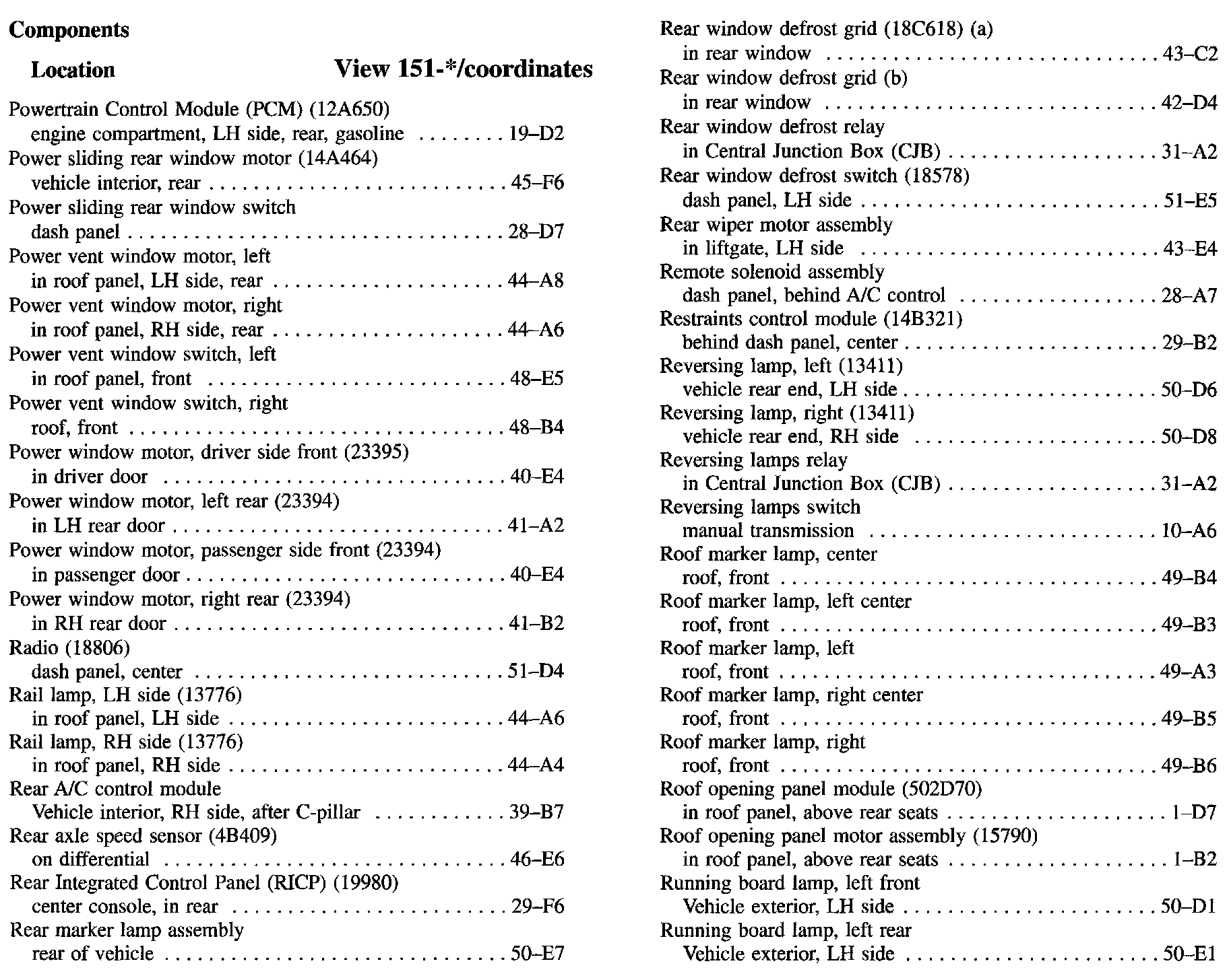 PLEASE NOTE: If a link on the Component Location Index to a view is not provided, that means that the Component and/or View in question does NOT apply to the vehicle model selected.