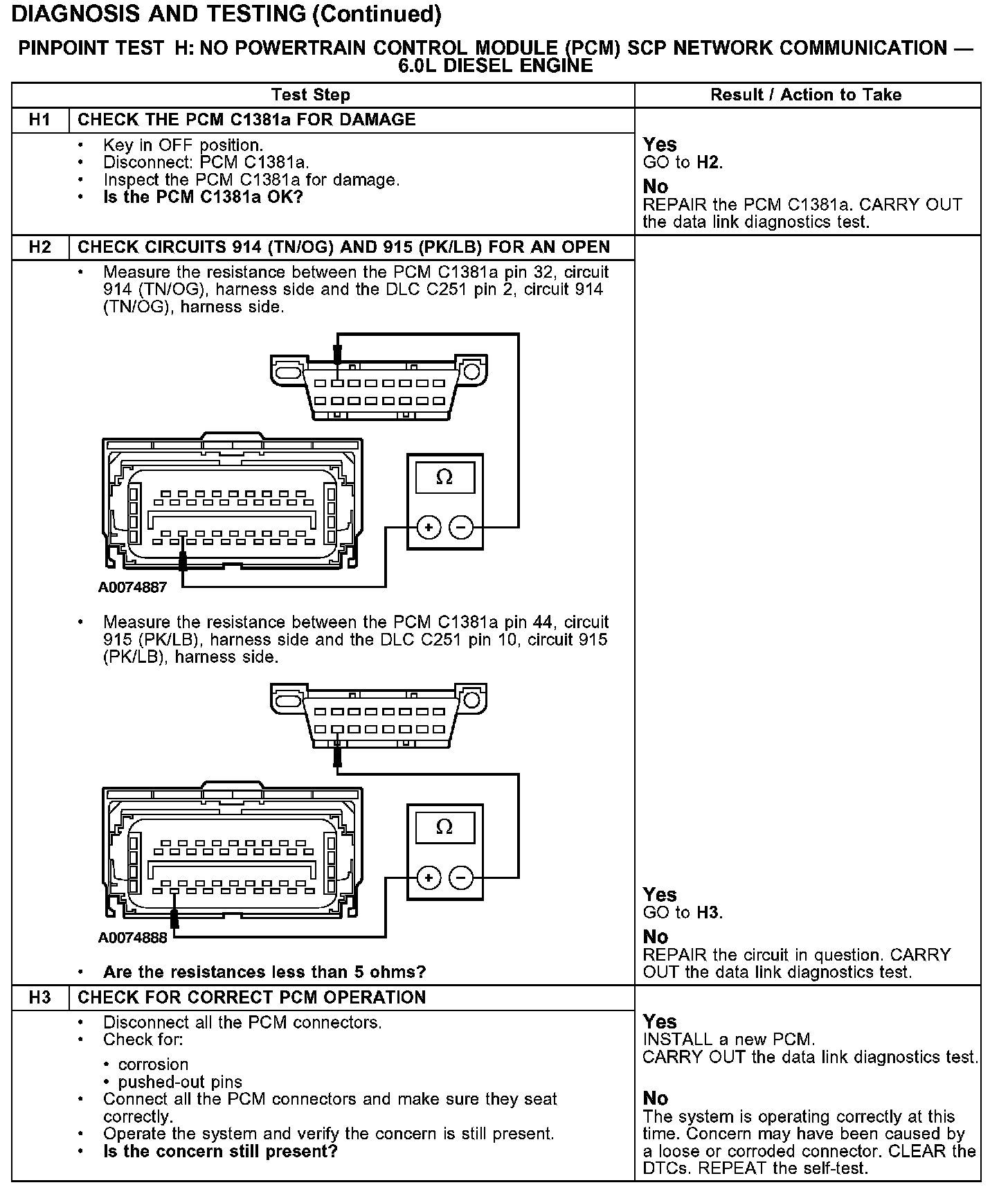 PINPOINT TEST H: NO POWERTRAIN CONTROL MODULE (PCM) SCP NETWORK COMMUNICATION - 6.0L DIESEL ENGINE