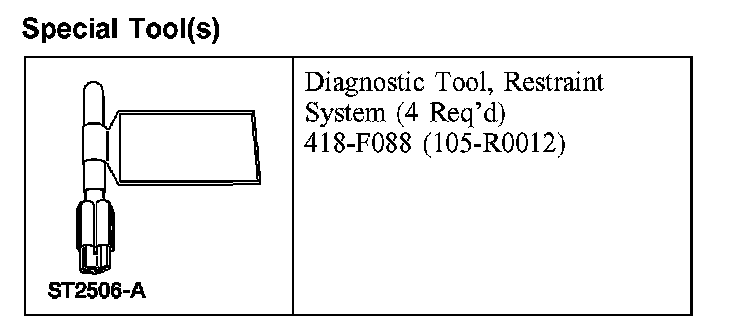 With all the restraint system diagnostic tools removed, prove out the supplemental restraint system (SRS). Prove Out Procedure