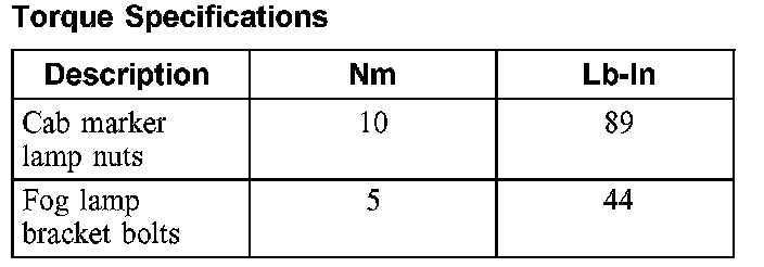 Torque Specifications: