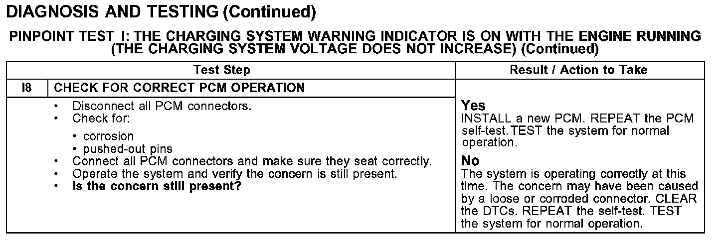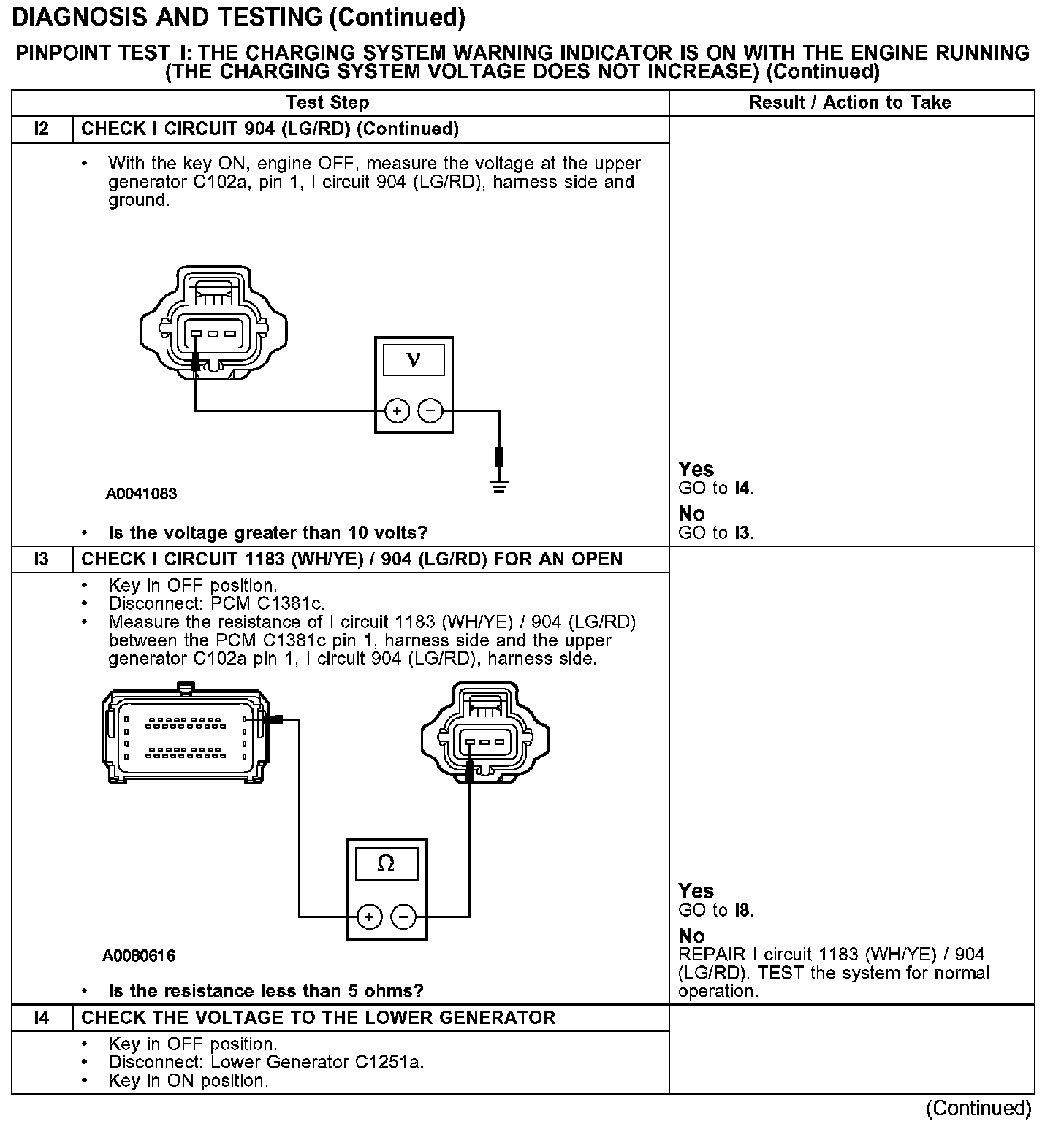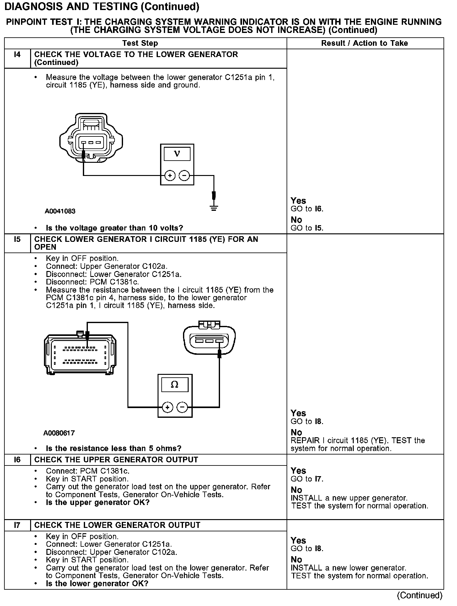 WARNING INDICATOR IS ON WITH THE ENGINE RUNNING (THE CHARGING SYSTEM VOLTAGE DOES NOT INCREASE)