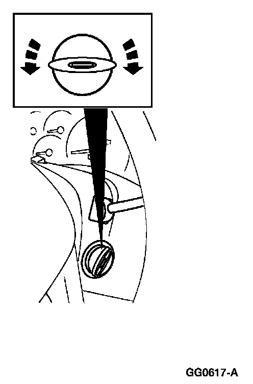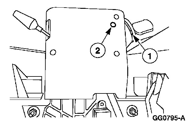 2 Using a 1/8-inch drift, press the ignition switch lock cylinder release pin through the access hole while pulling out the ignition switch lock cylinder.