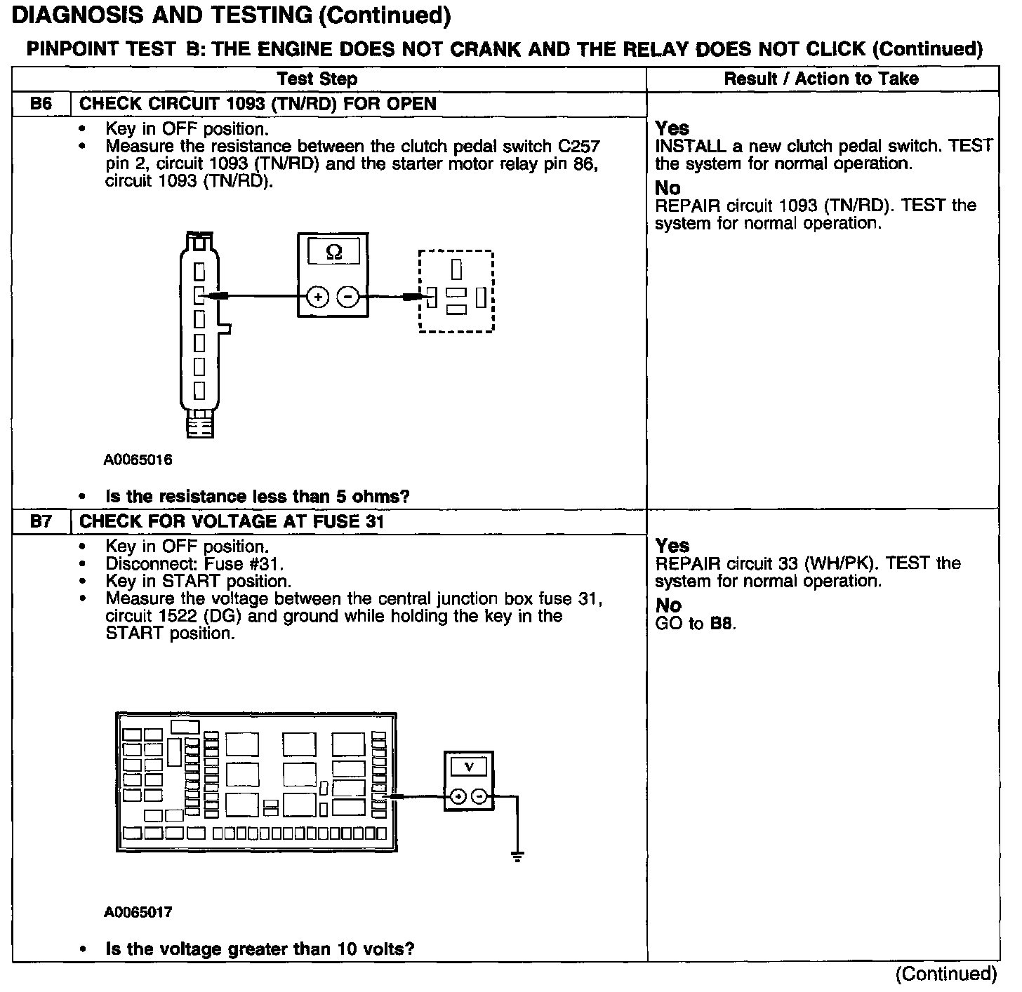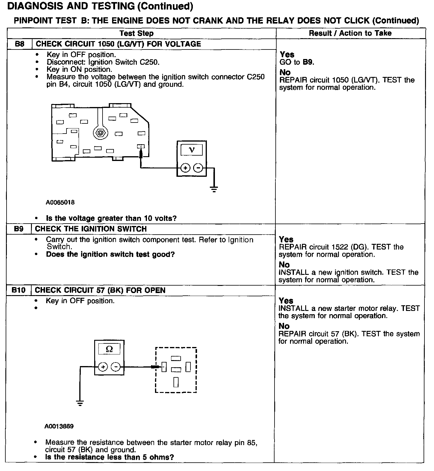 PINPOINT TEST B: THE ENGINE DOES NOT CRANK AND THE RELAY DOES NOT CLICK