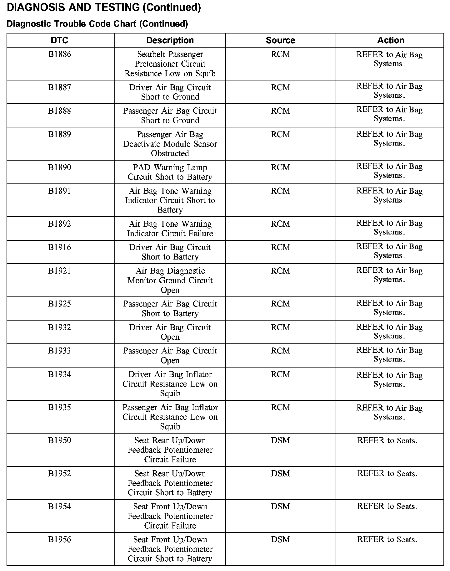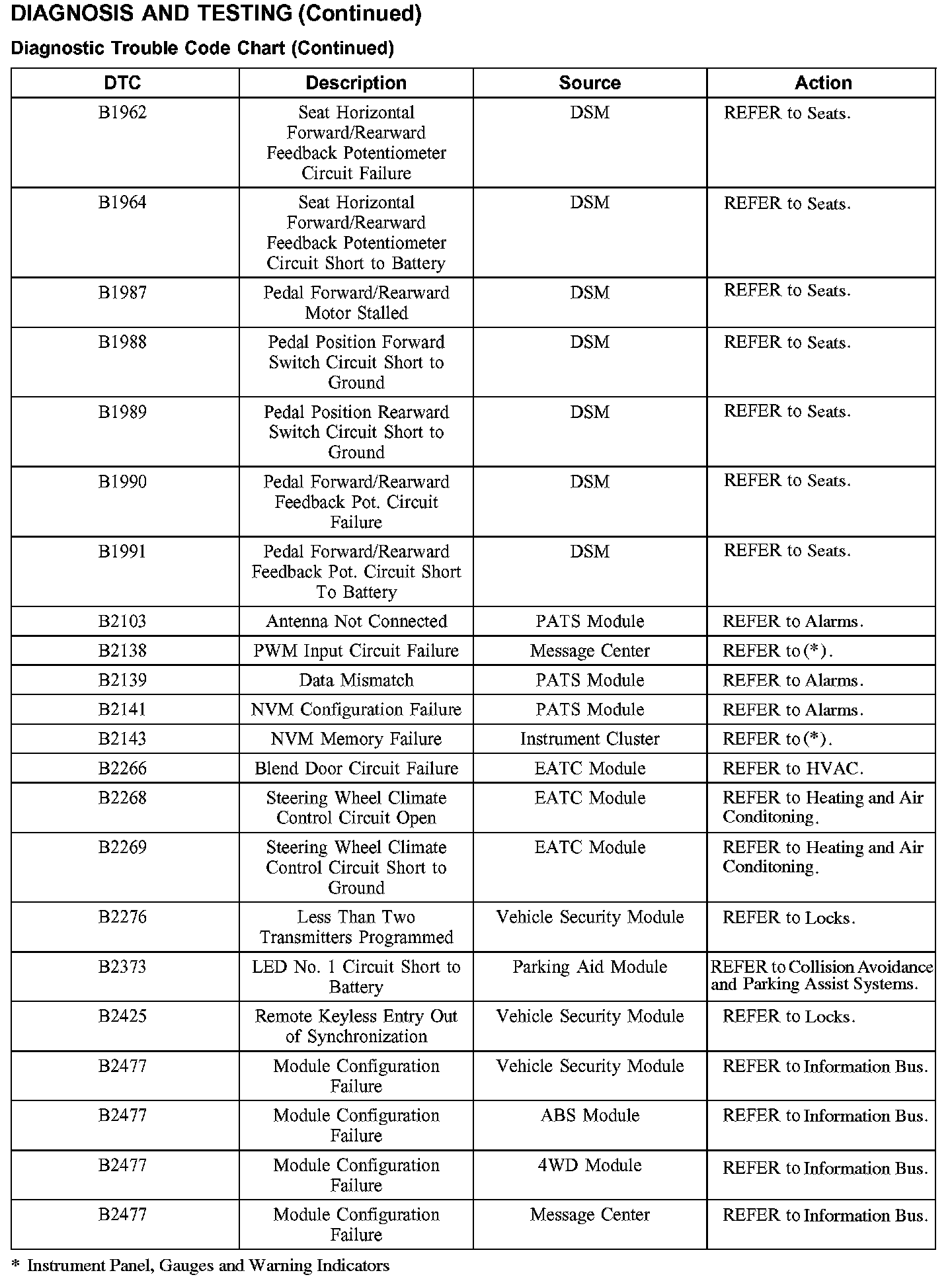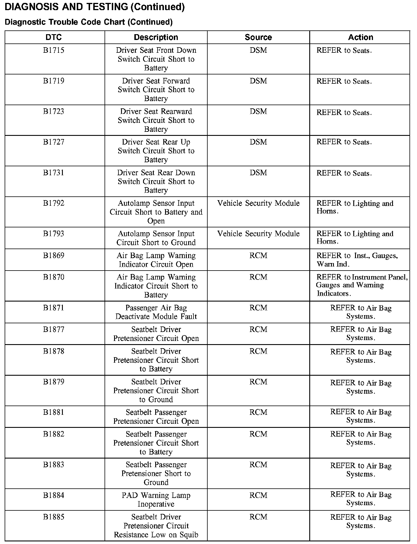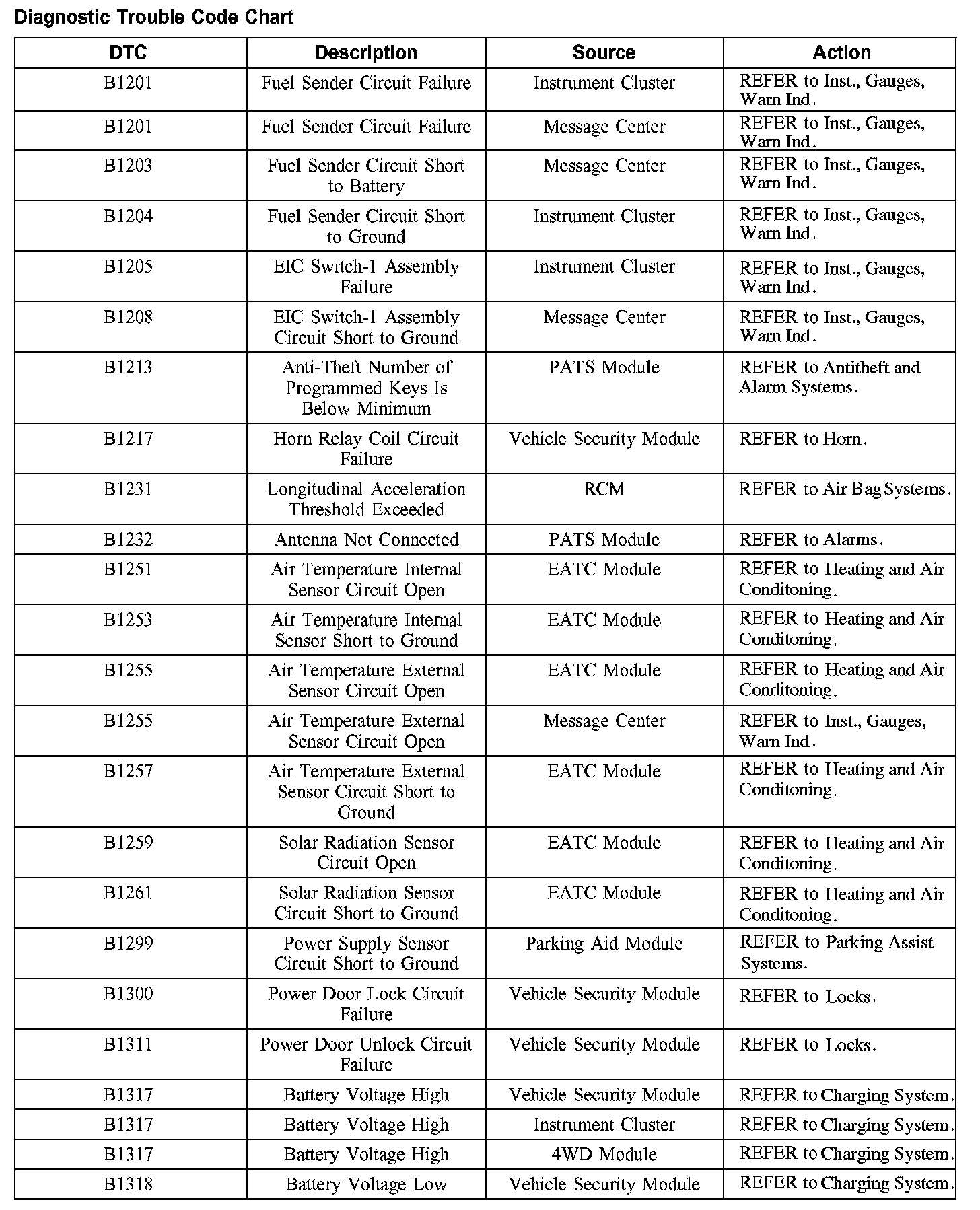 DIAGNOSTIC TROUBLE CODE CHARTDTC Chart B1201 - B1318: