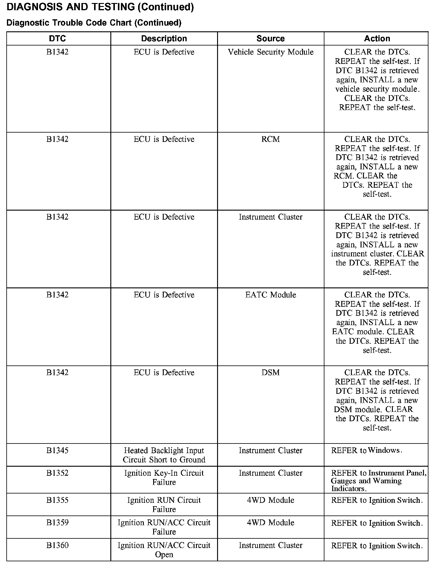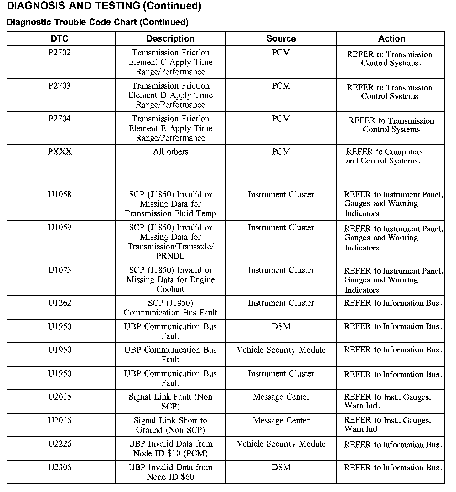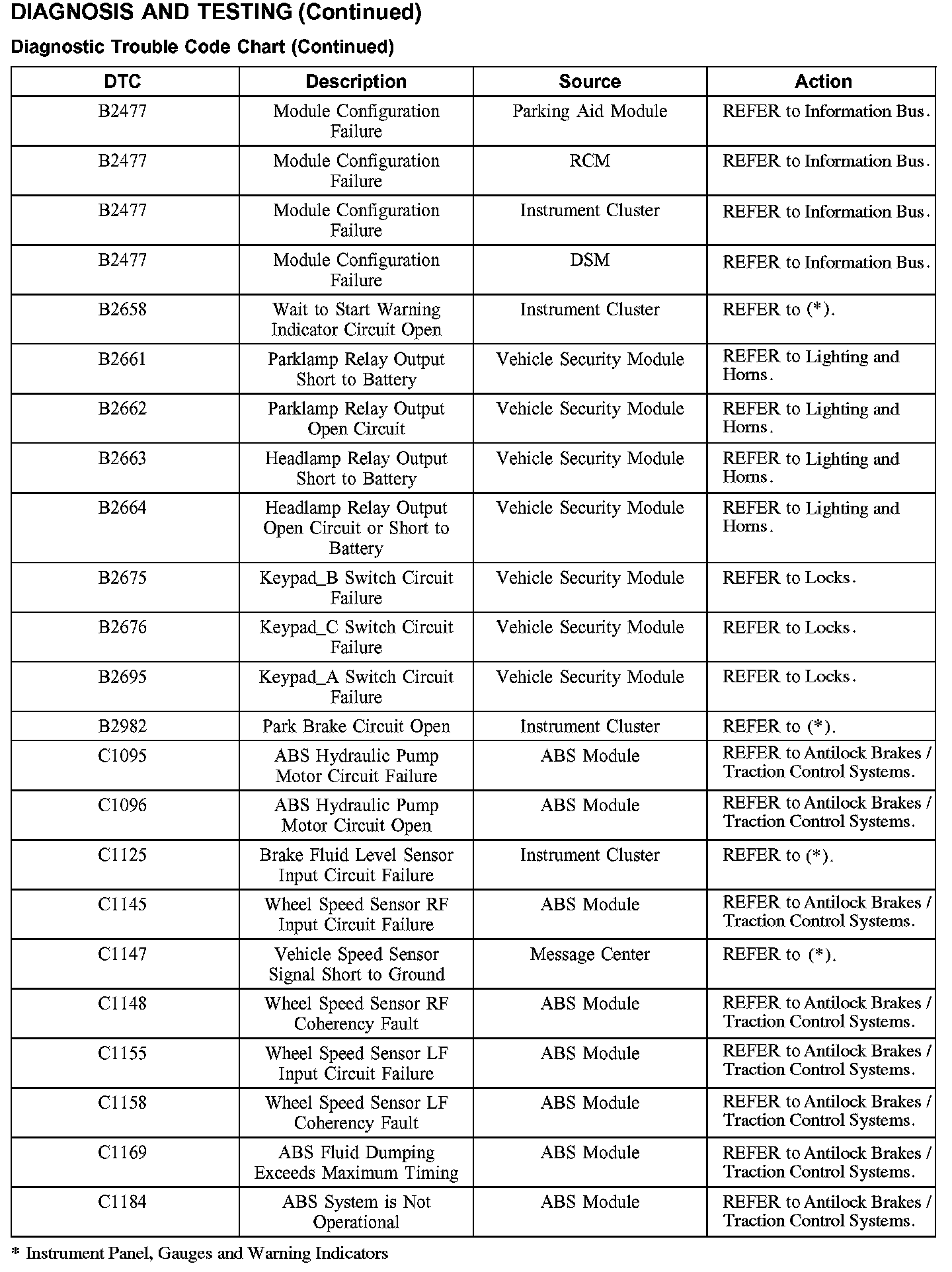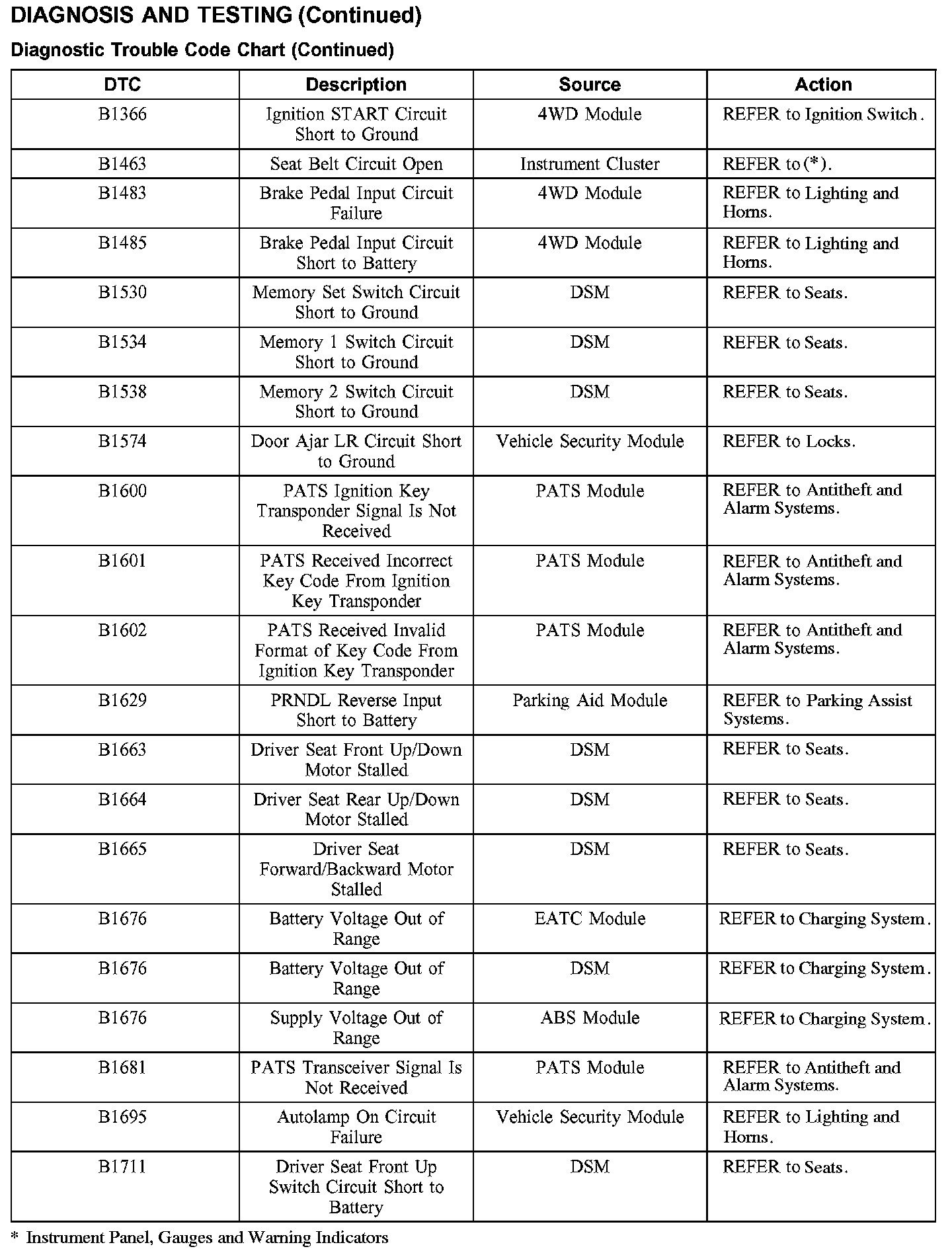 DIAGNOSTIC TROUBLE CODE CHARTDTC Chart B1201 - B1318: