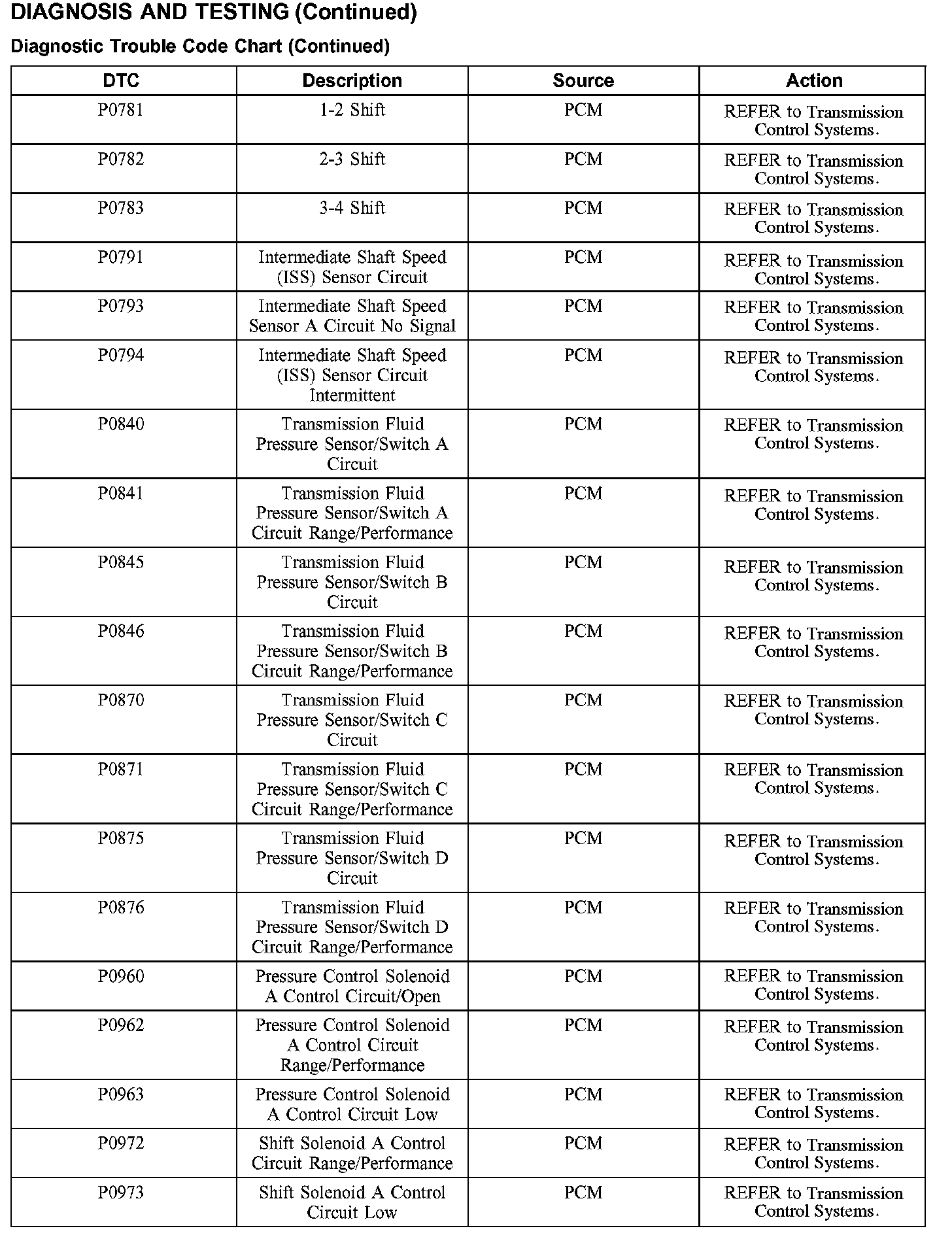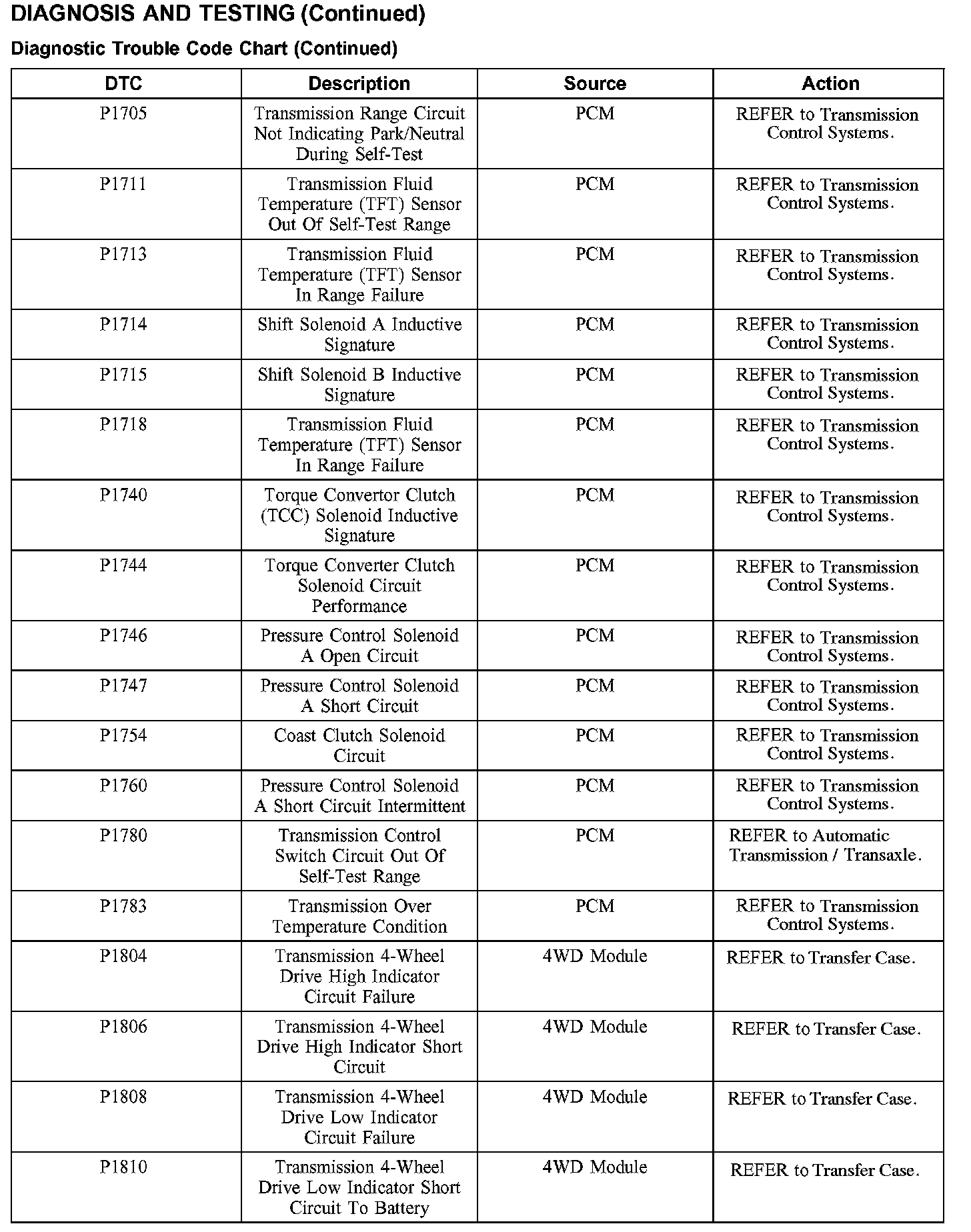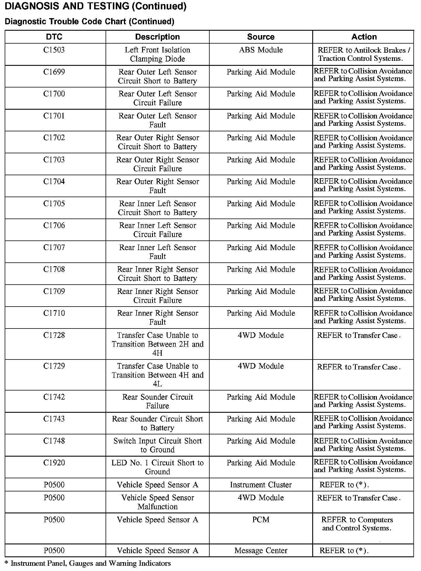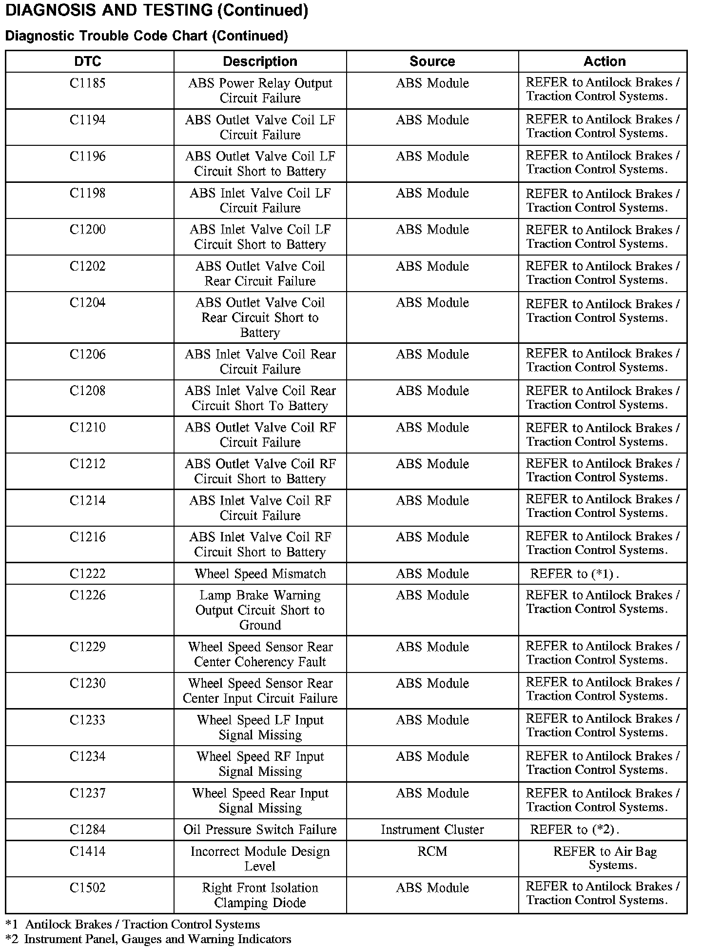 DIAGNOSTIC TROUBLE CODE CHARTDTC Chart B1201 - B1318: