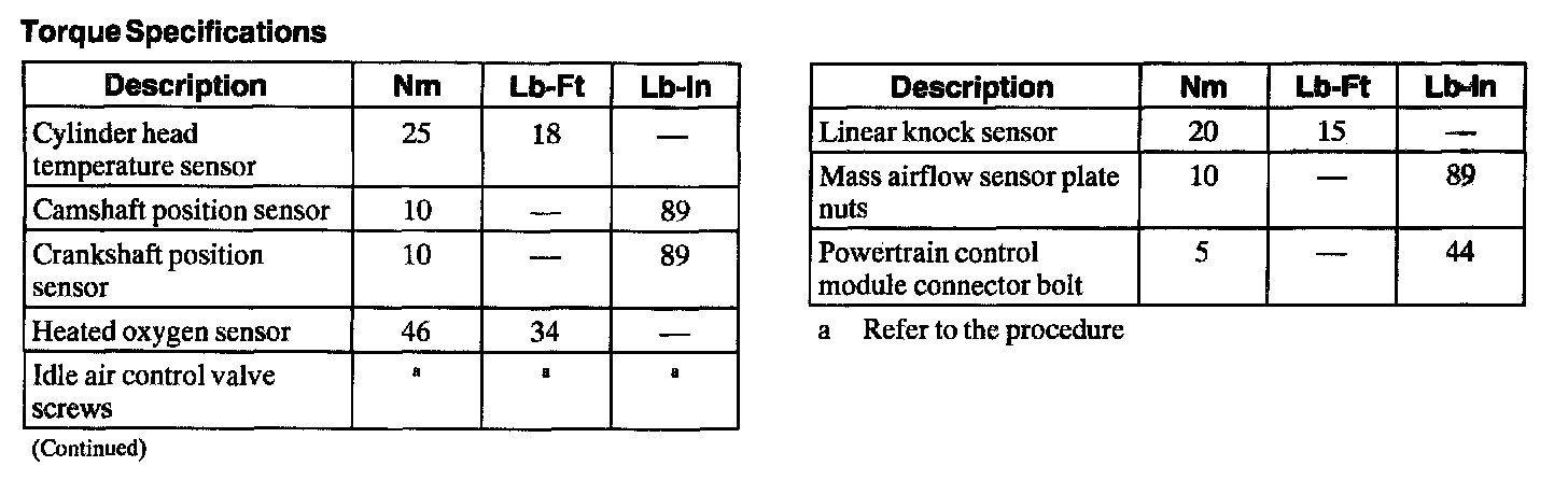 Torque Specifications: