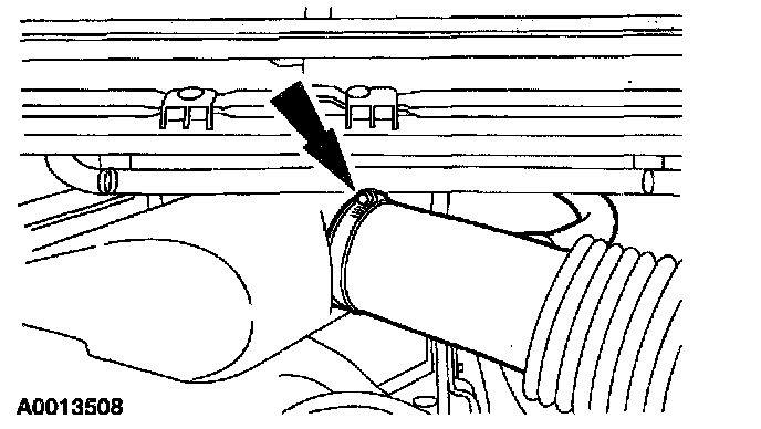 2. Loosen the clamp and position the air cleaner outlet tube aside.
