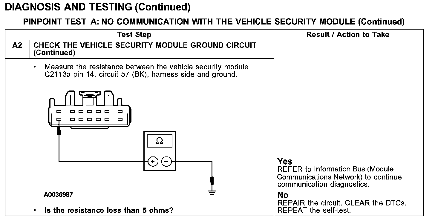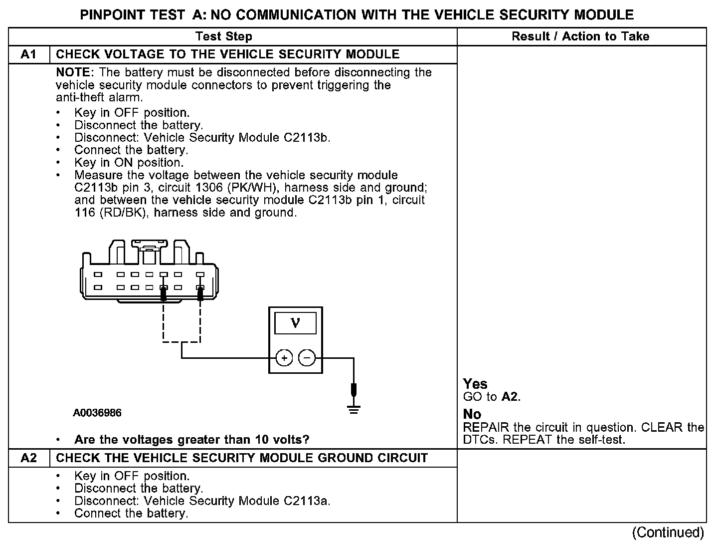 PINPOINT TEST A: NO COMMUNICATION WITH THE VEHICLE SECURITY MODULE