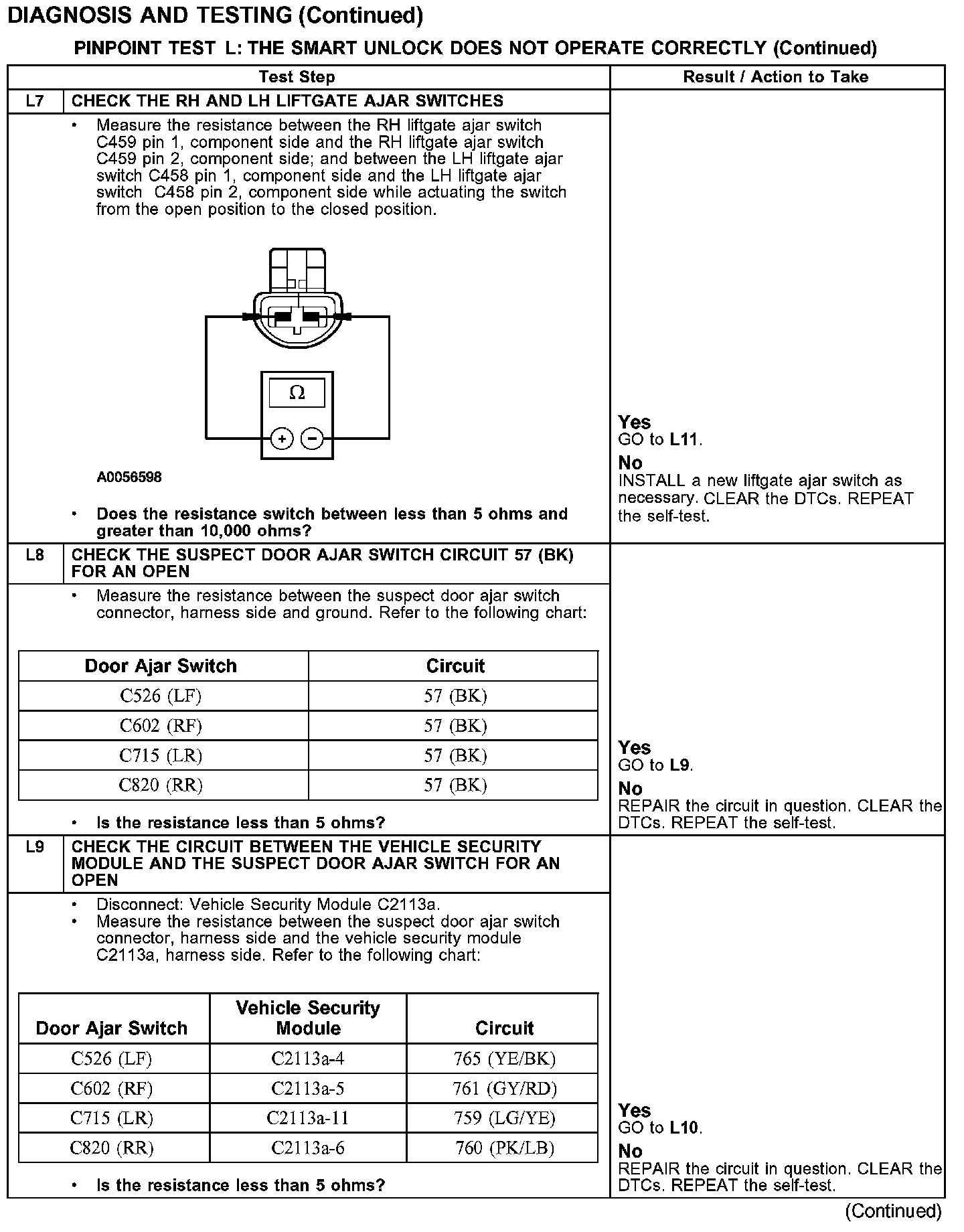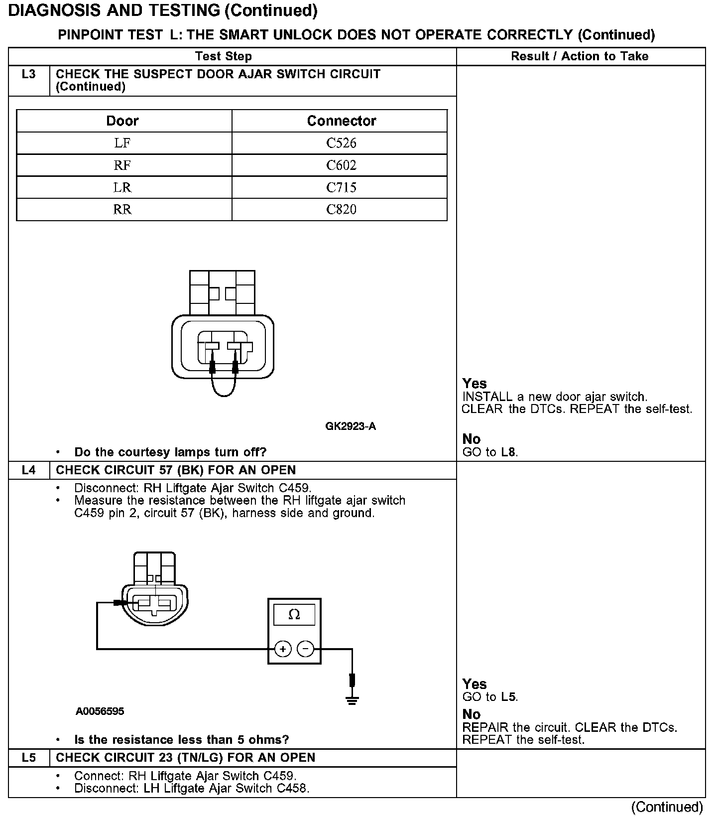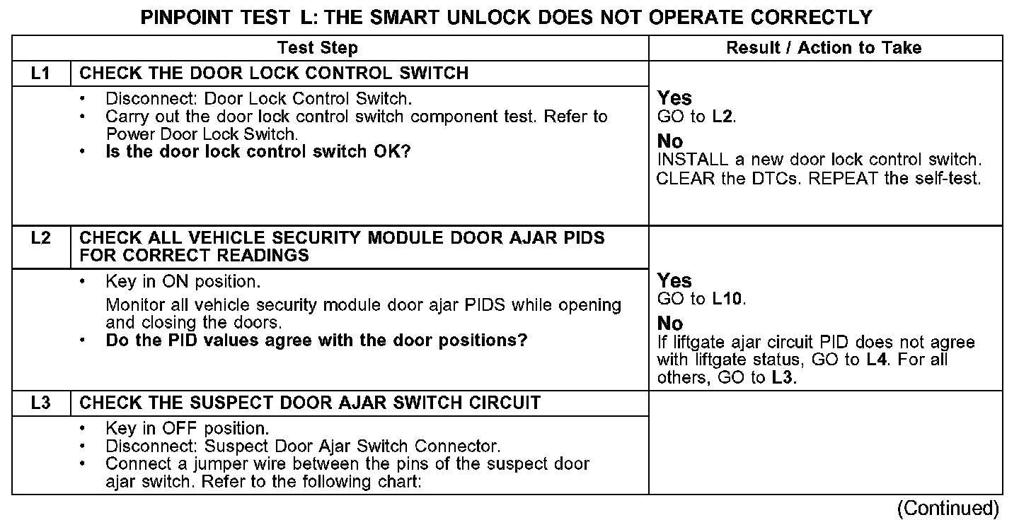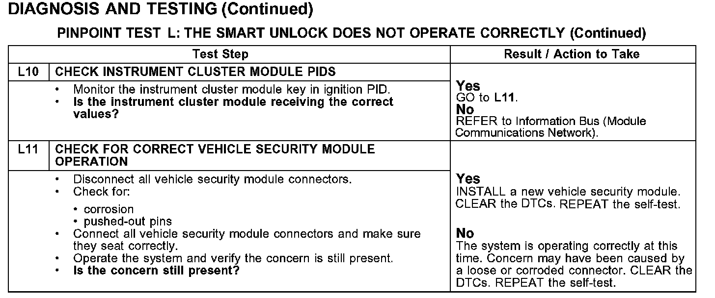 PINPOINT TEST L: THE SMART UNLOCK DOES NOT OPERATE CORRECTLY
