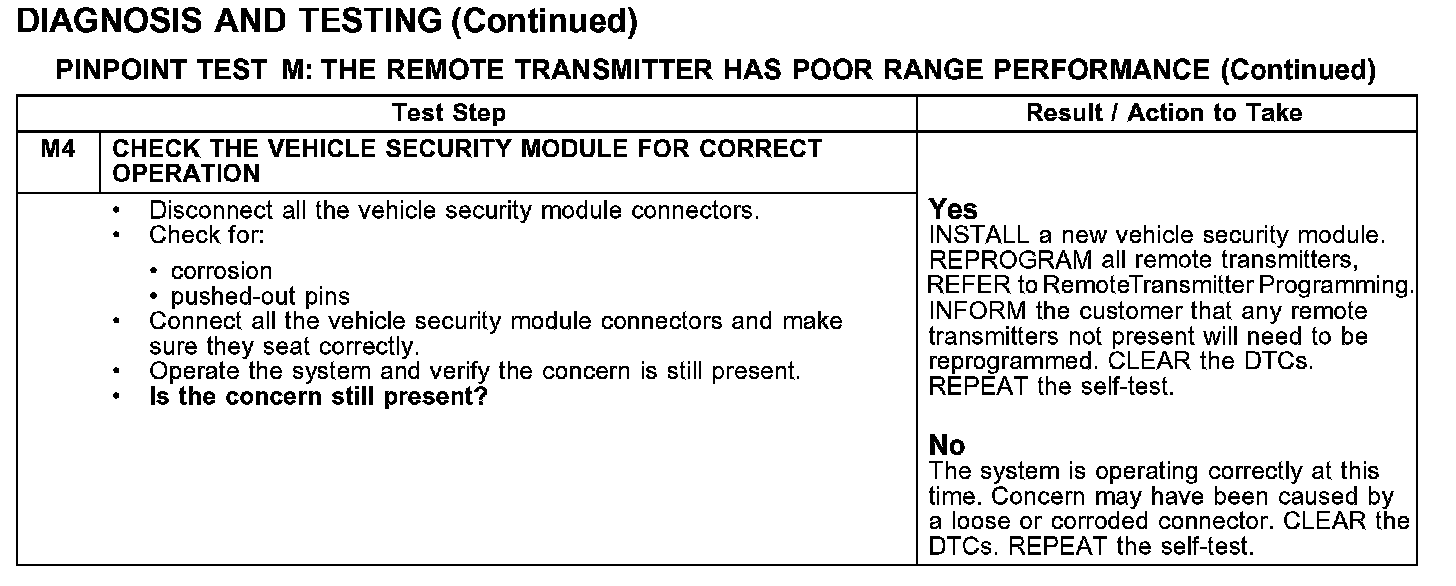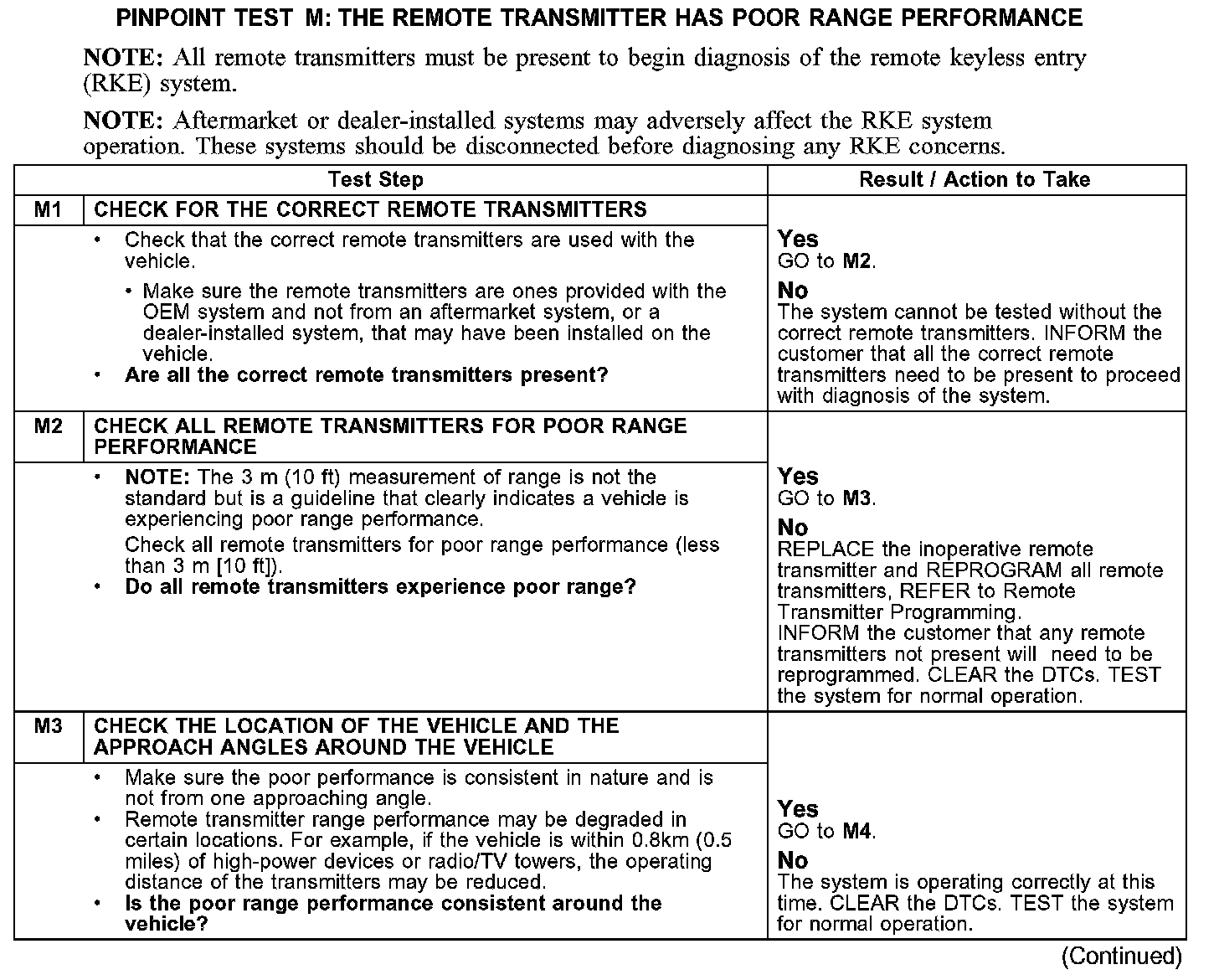 PINPOINT TEST M: THE REMOTE TRANSMITTER HAS POOR RANGE PERFORMANCE