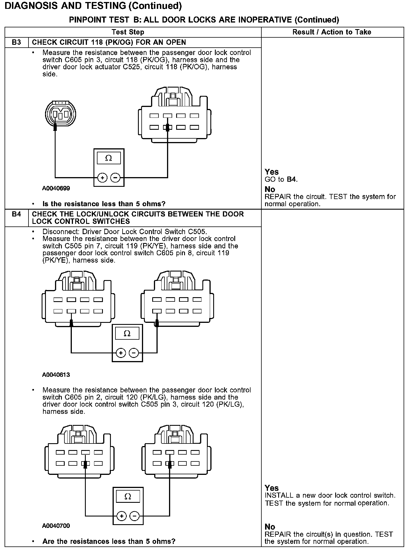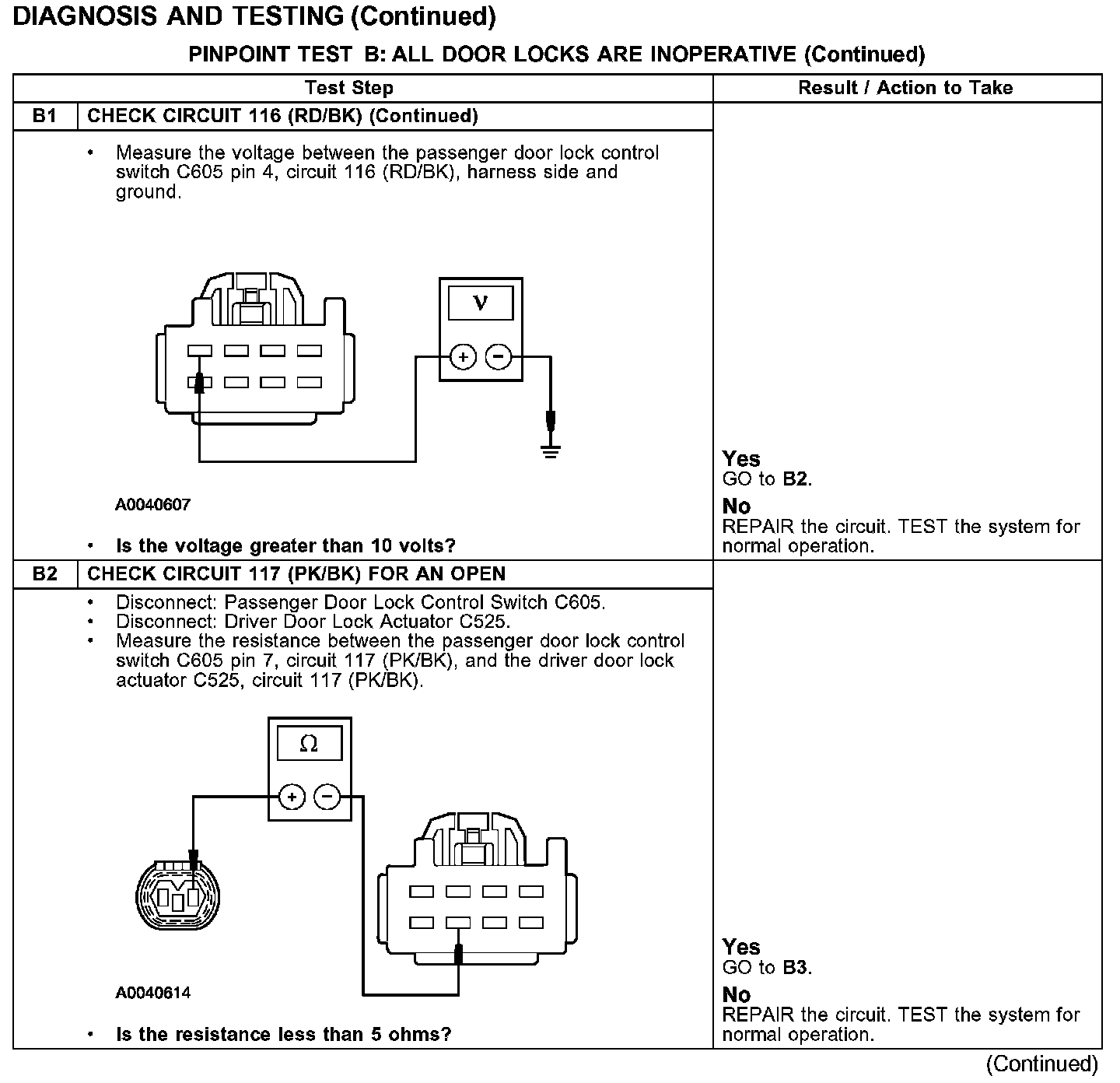 PINPOINT TEST B: ALL DOOR LOCKS ARE INOPERATIVE