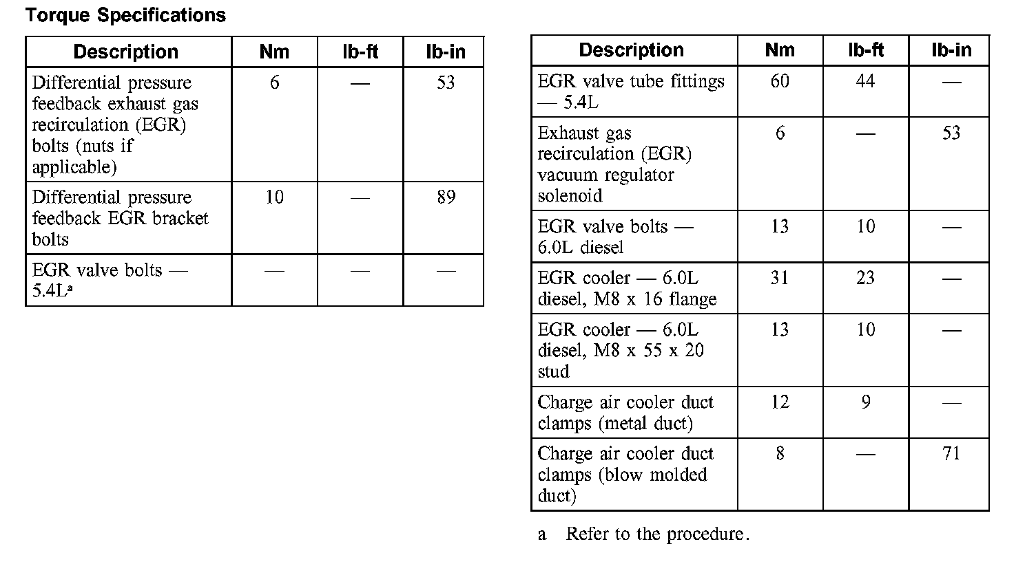 Torque Specifications: