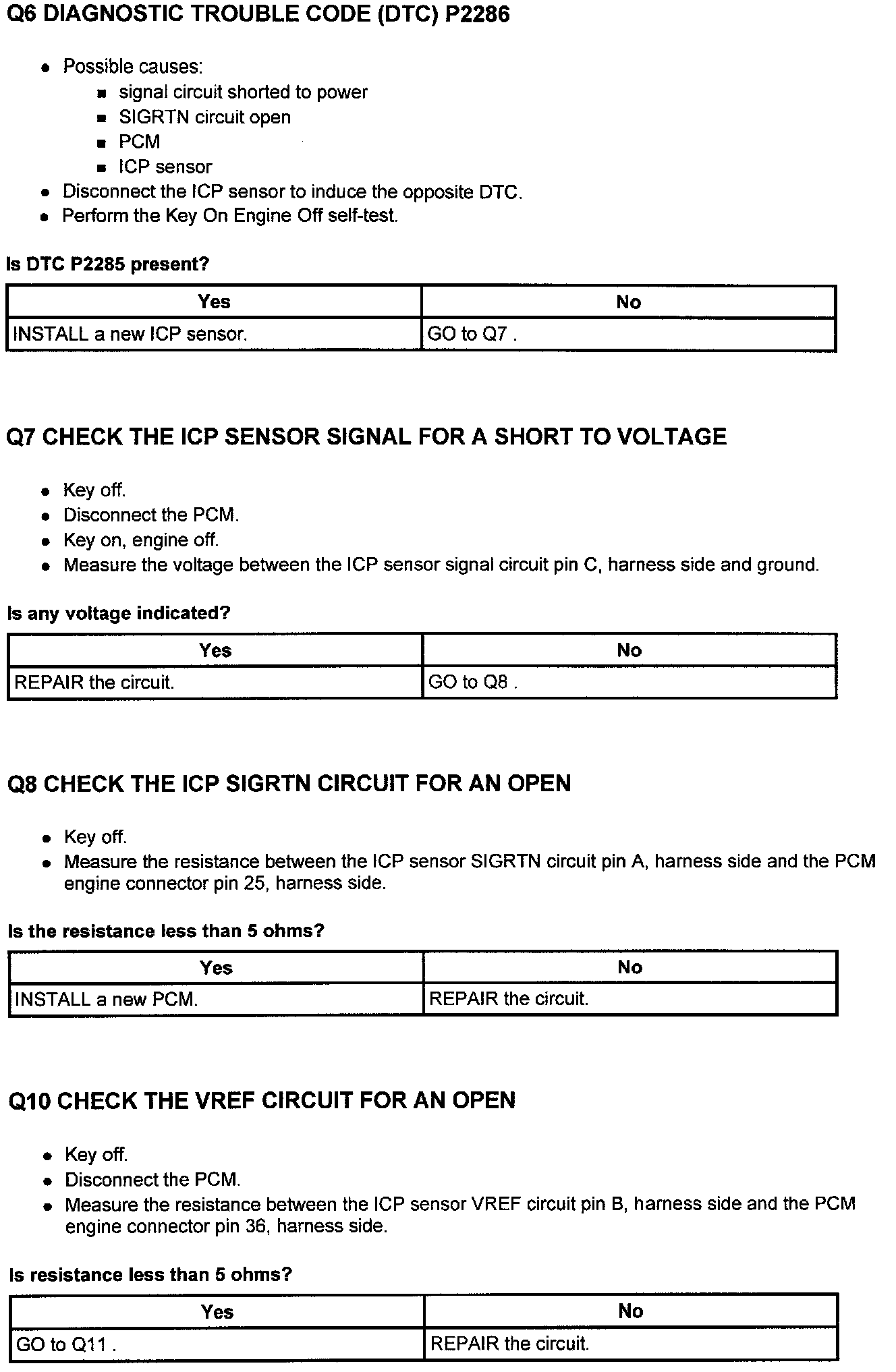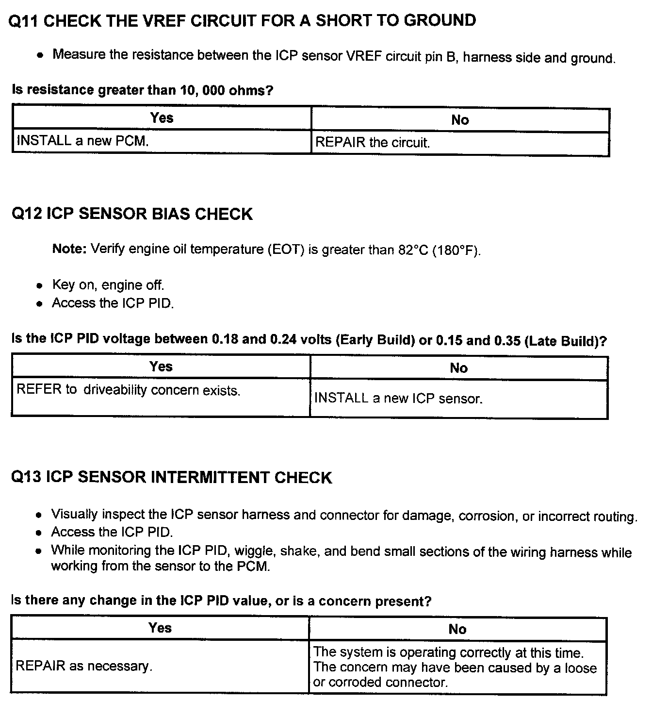 PINPOINT TEST Q: INJECTION CONTROL PRESSURE ( ICP ) SENSOR