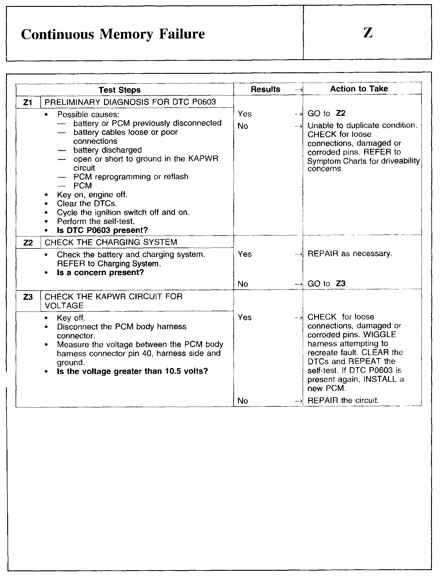 PINPOINT TEST Z: CONTINUOUS MEMORY FAILURE