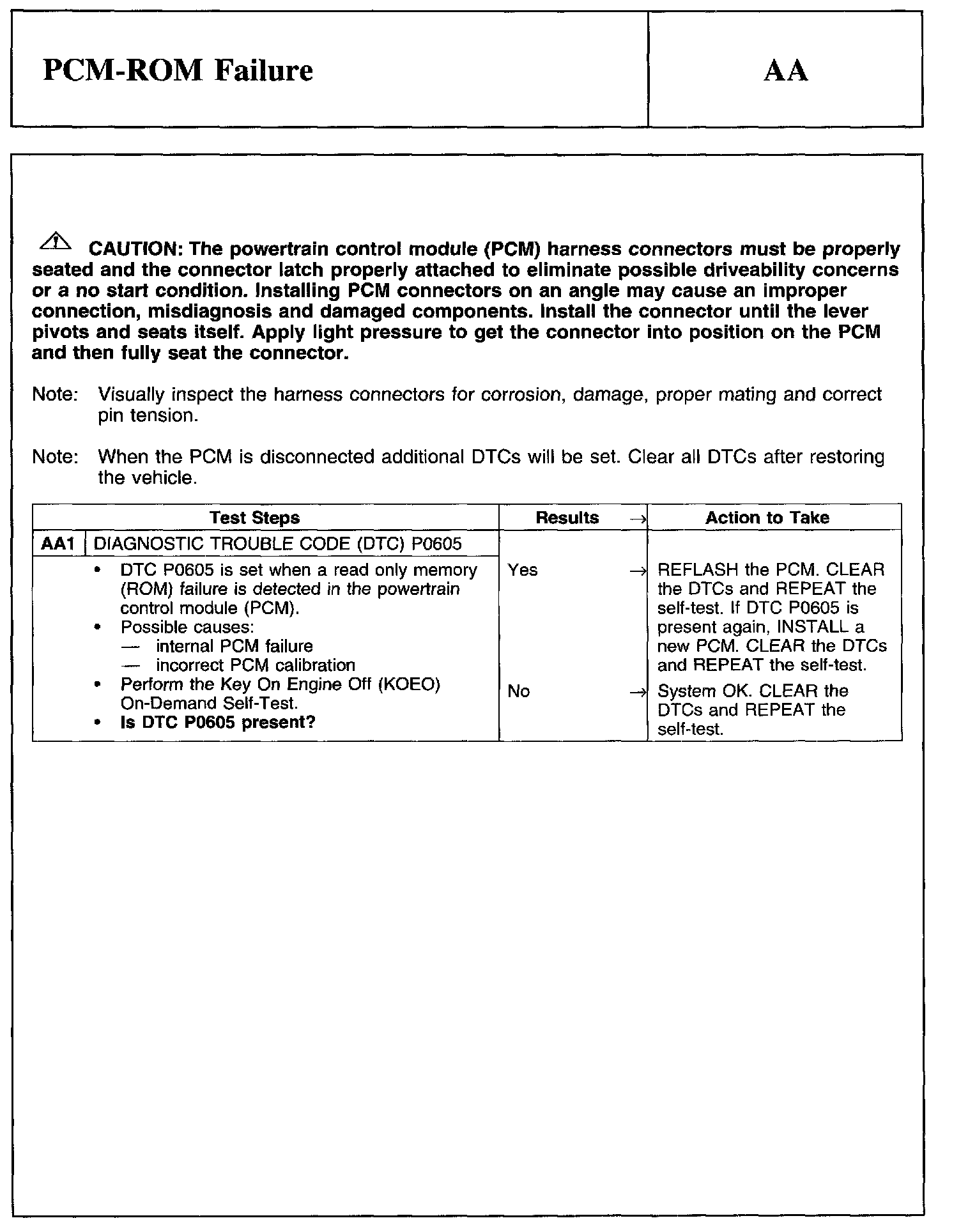 PINPOINT TEST AA: PCM-ROM FAILURE