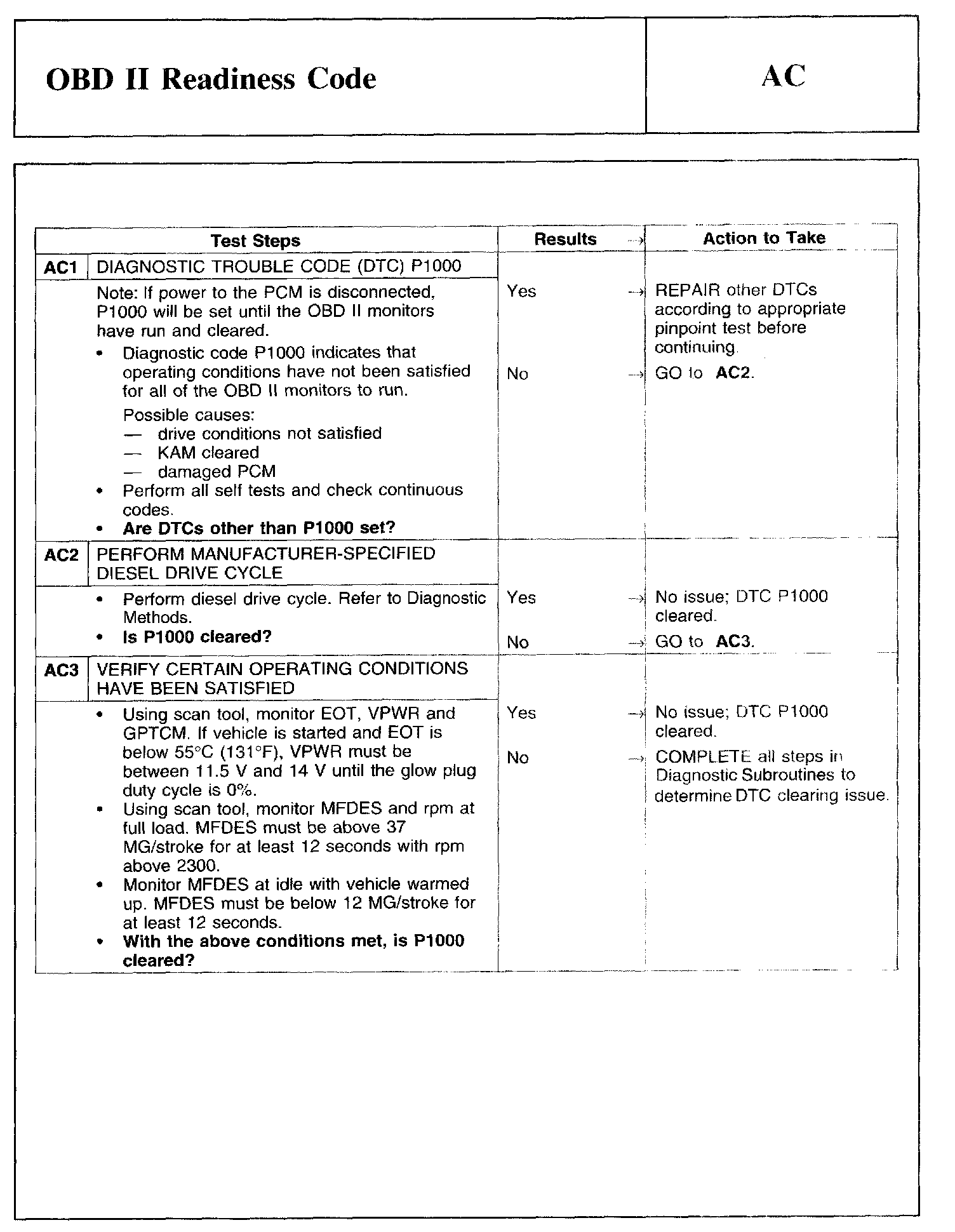 Tests AC: OBD II Readiness Code
