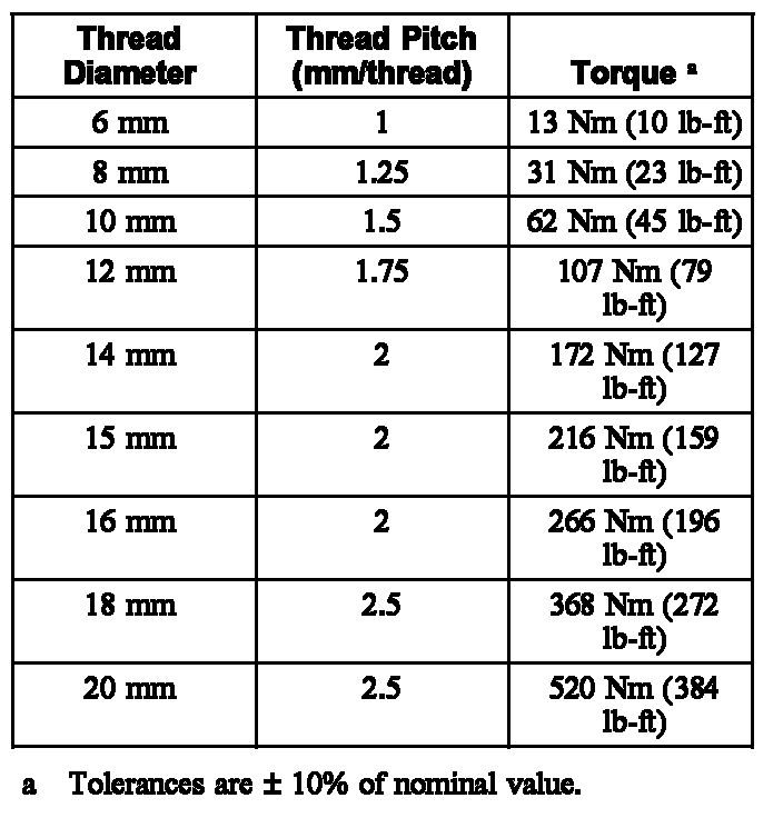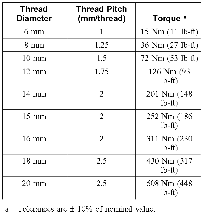 Standard Torques - Class 12.9 Metric Bolts and Studs