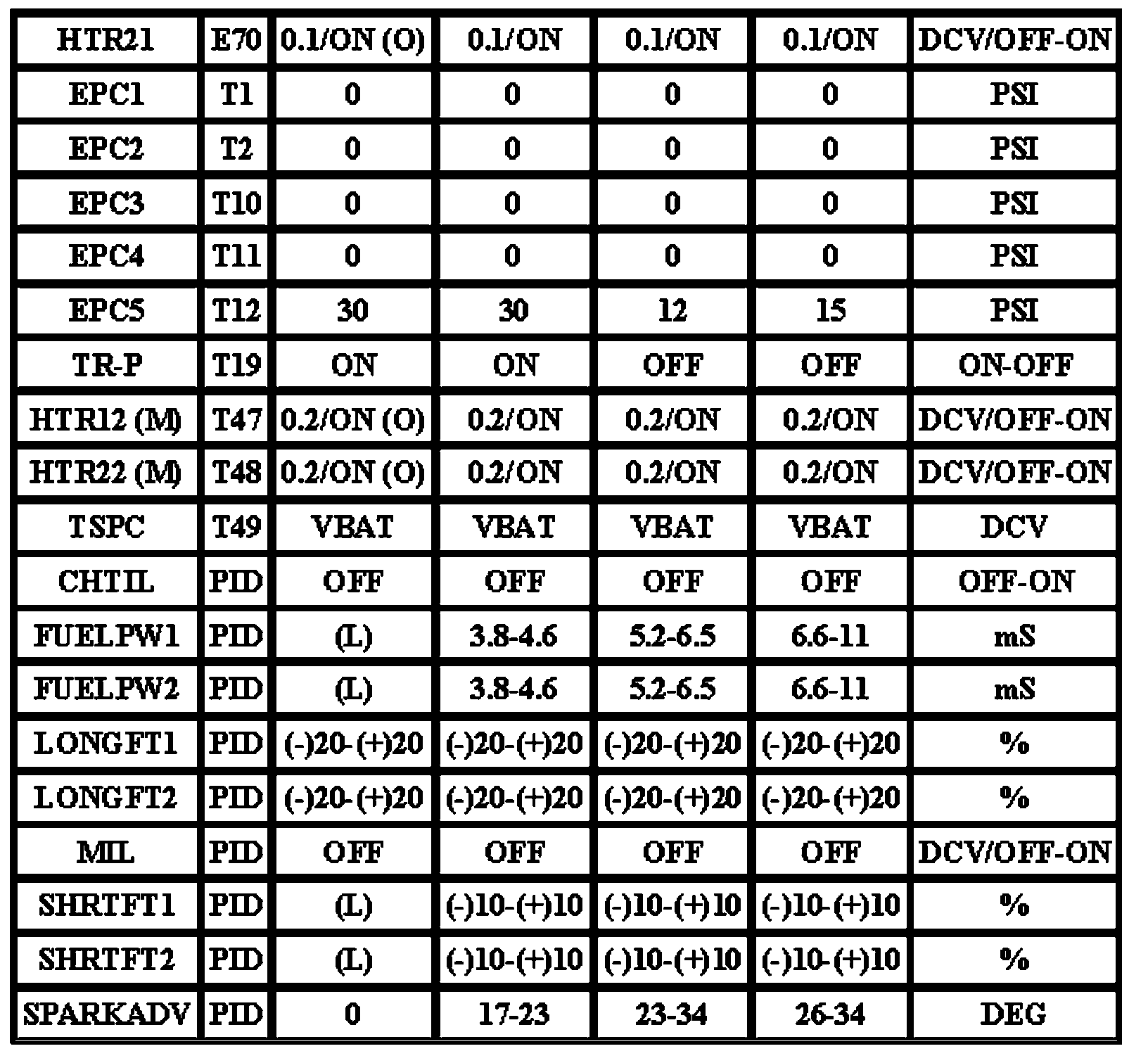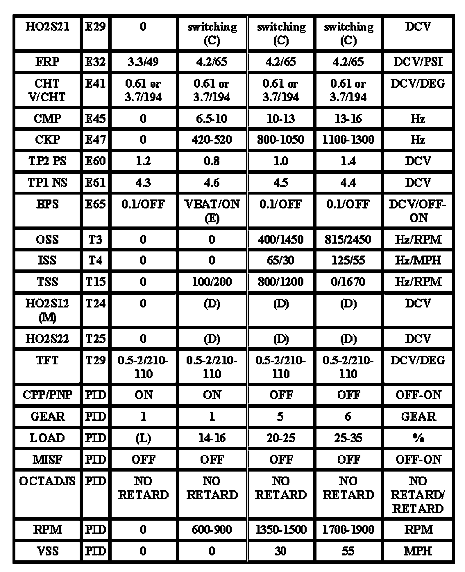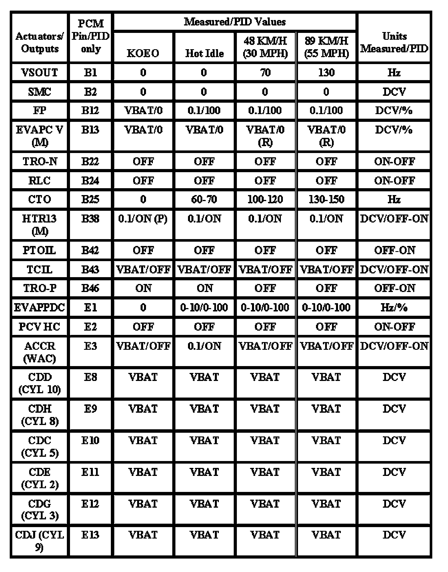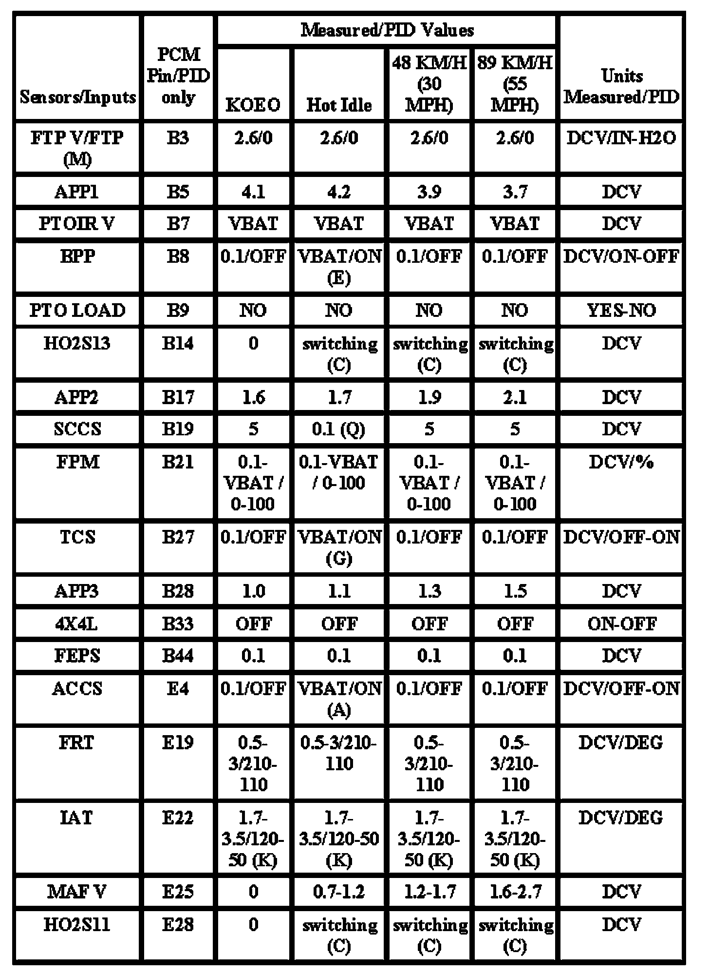 Note: All generic OBD readings under no load (PARK or NEUTRAL).