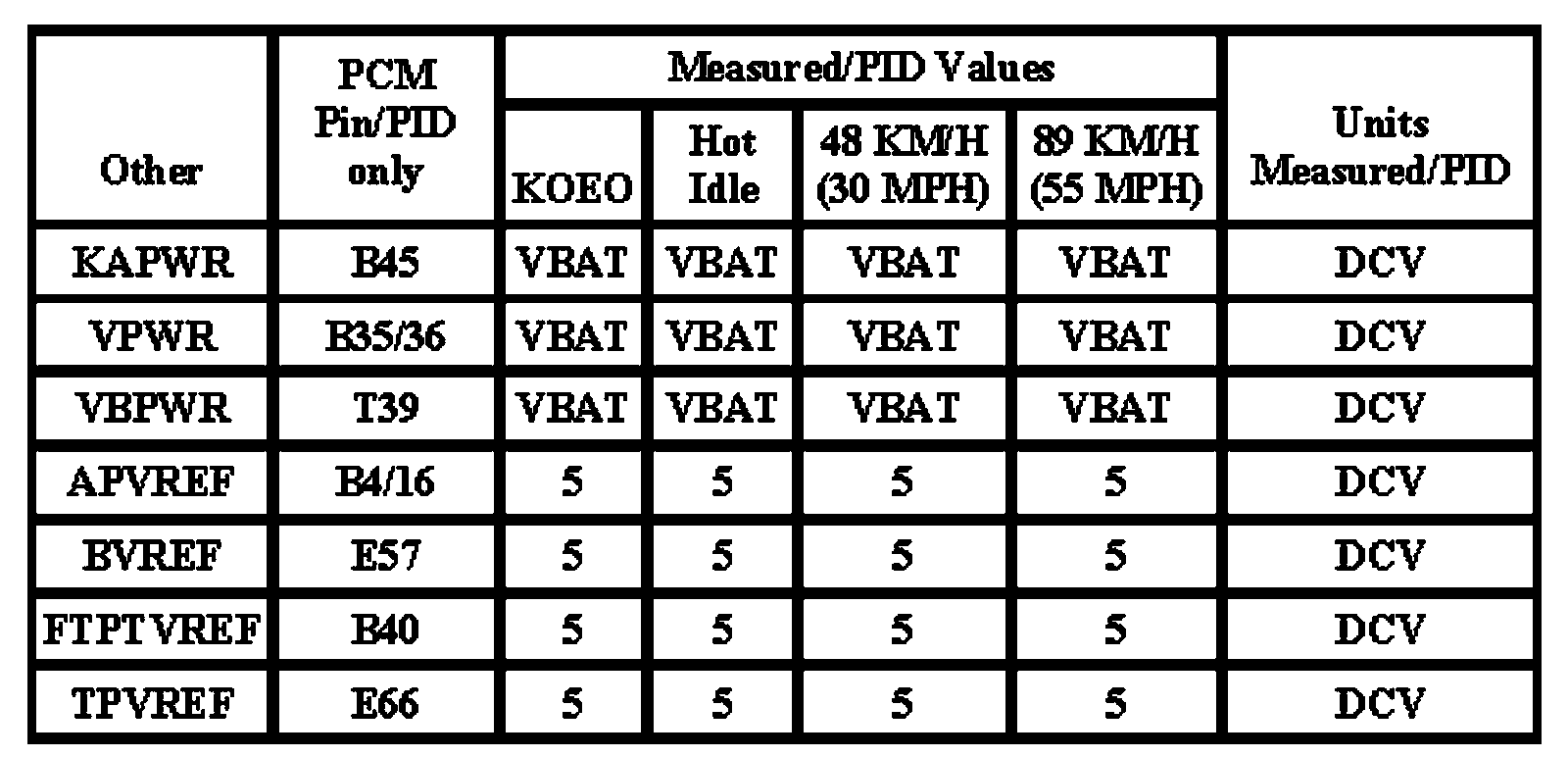 The Typical Diagnostic Reference Value Charts do not display fault PIDs. These are PIDs which indicate a hard fault with the circuit. They display a value of "YES" or "NO" and are PIDs ending with an "F".
