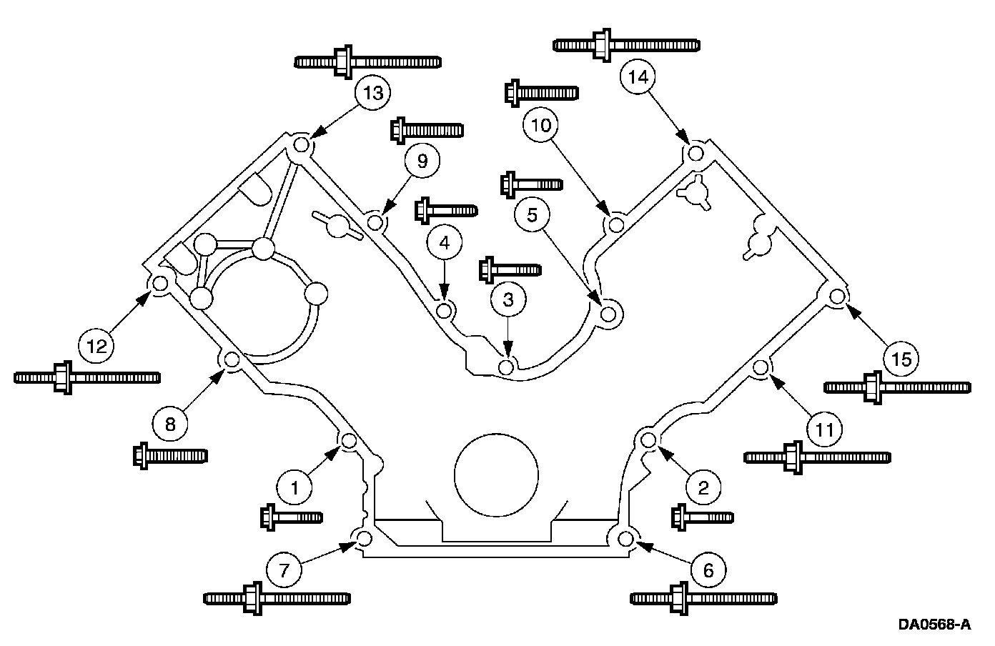 Engine front cover bolts (6- 15) 48 Nm (35 ft. lbs.)