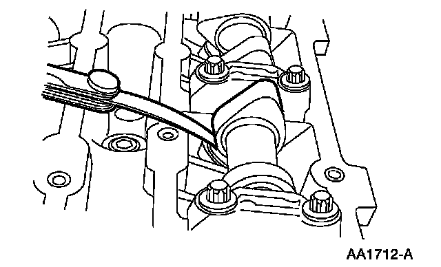 NOTE: Before removing the camshafts, measure the clearance of each valve at base circle, with the lobe pointed away from the tappet. Failure to measure all clearances prior to removing the camshafts will necessitate repeated removal and installation and wasted labor time.