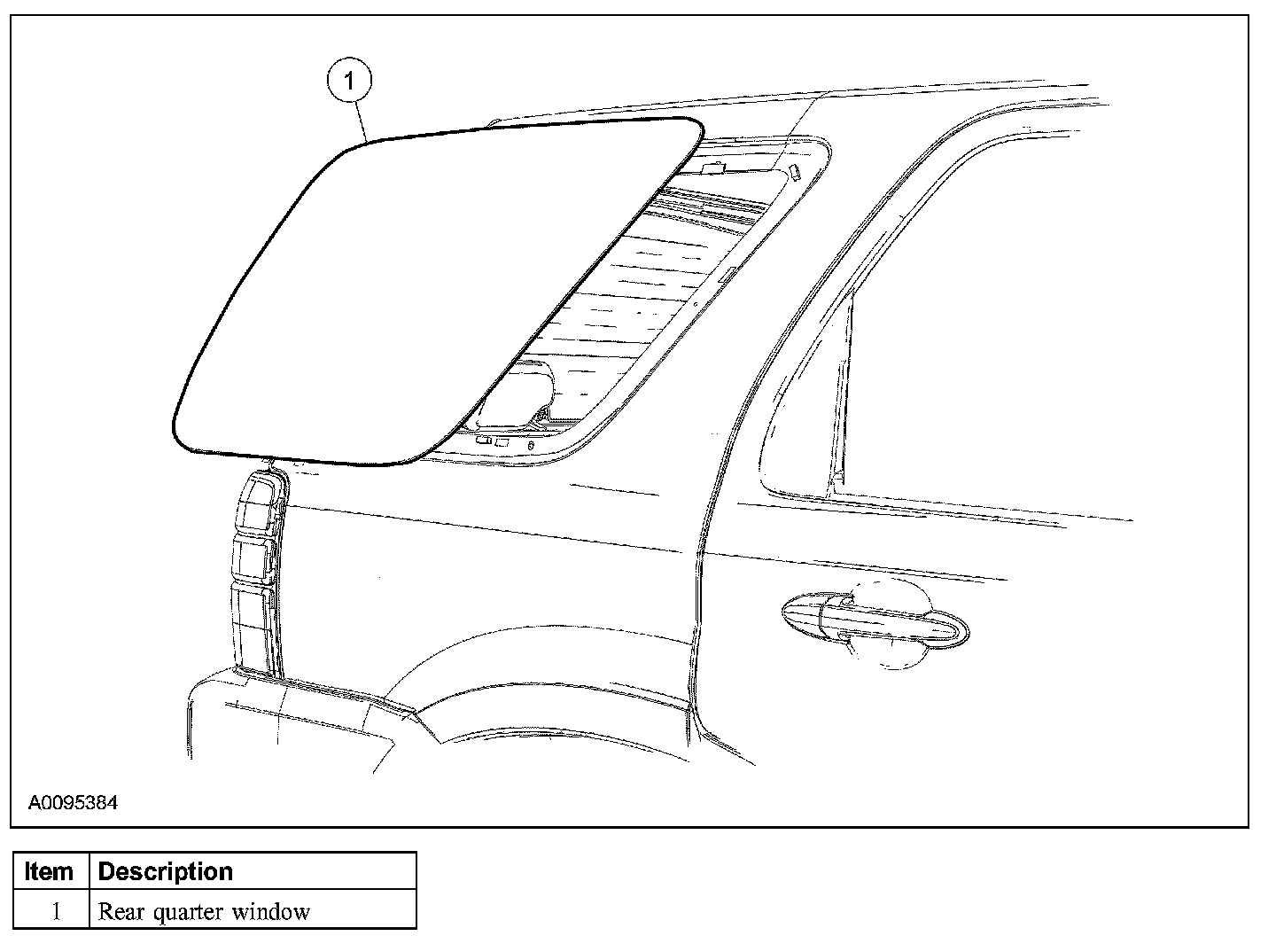 5. CAUTION: If installing a LH rear quarter window on the Escape Hybrid, do not apply urethane glass prep to the polycarbonate vent of the window assembly.