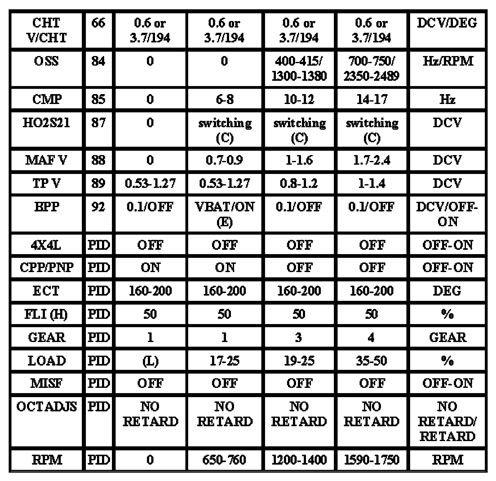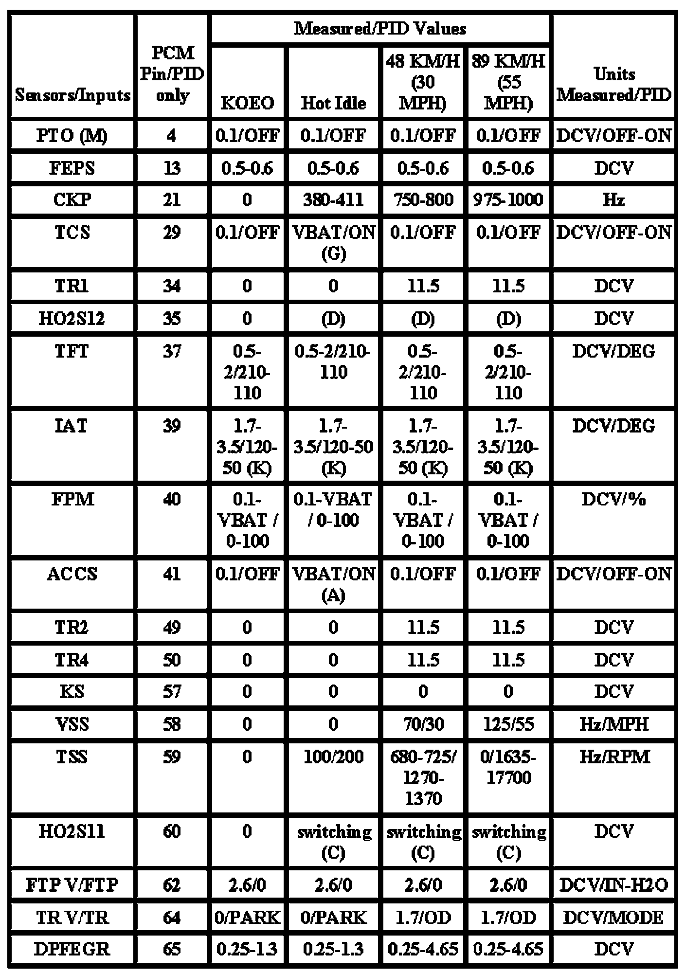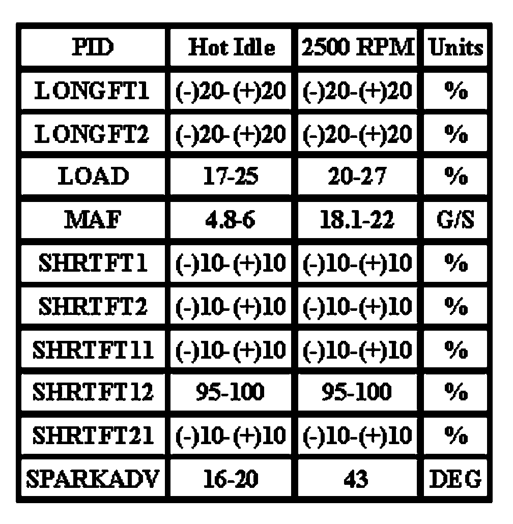 Note: All generic OBD readings under no load (PARK or NEUTRAL).
