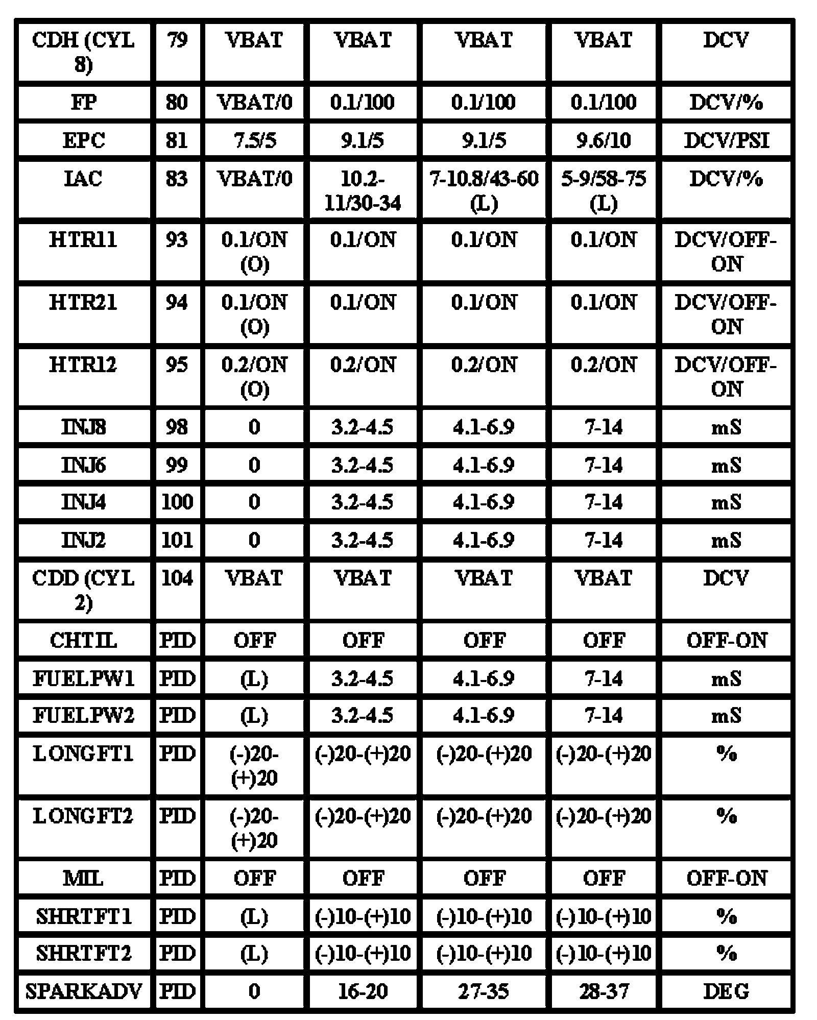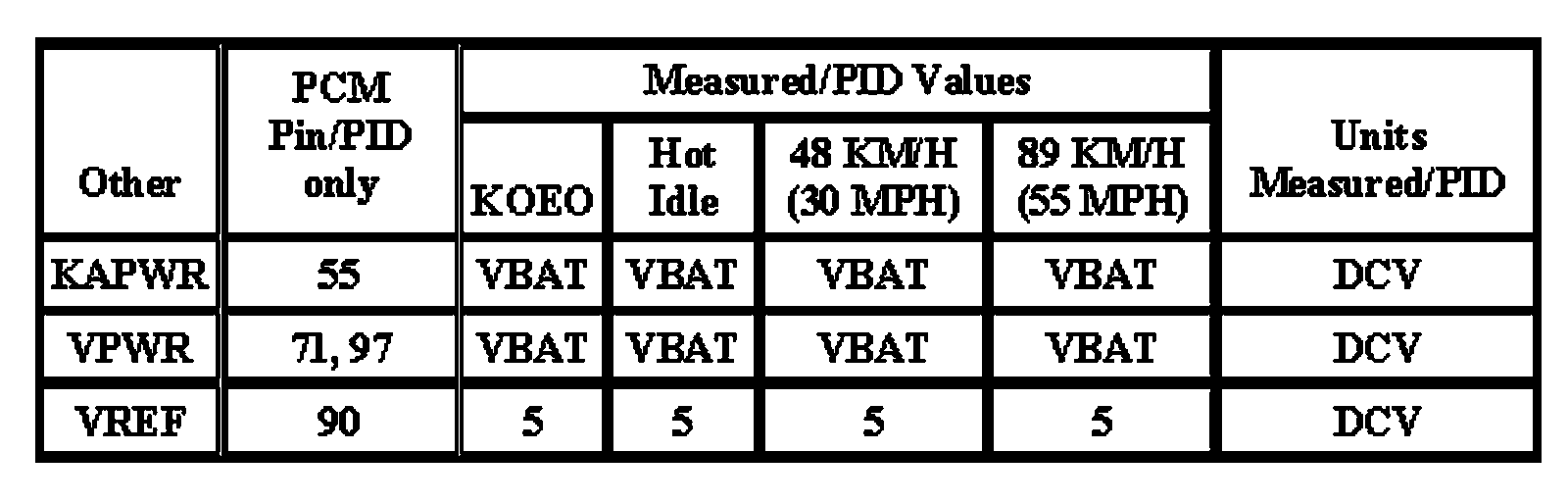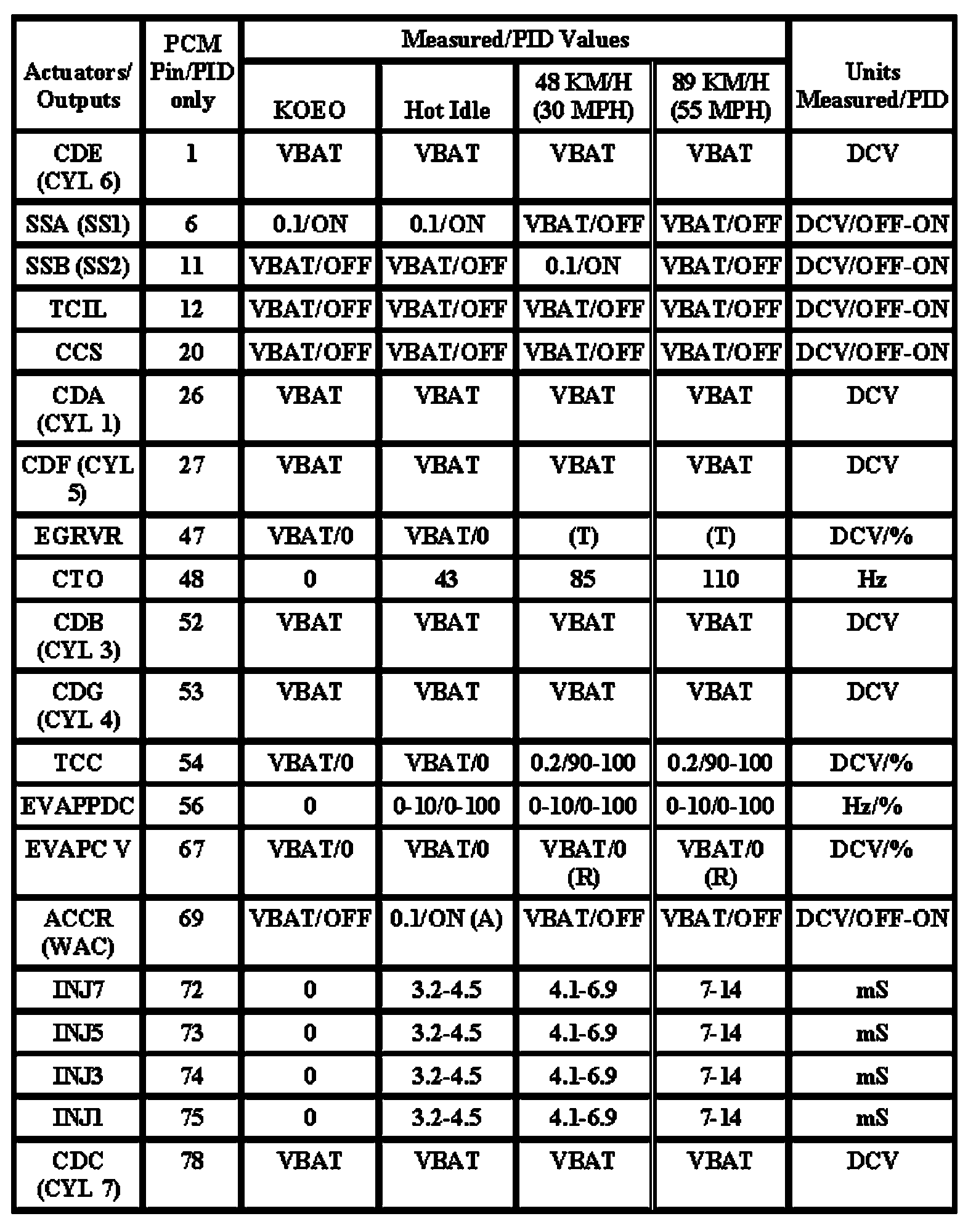 Note: All generic OBD readings under no load (PARK or NEUTRAL).