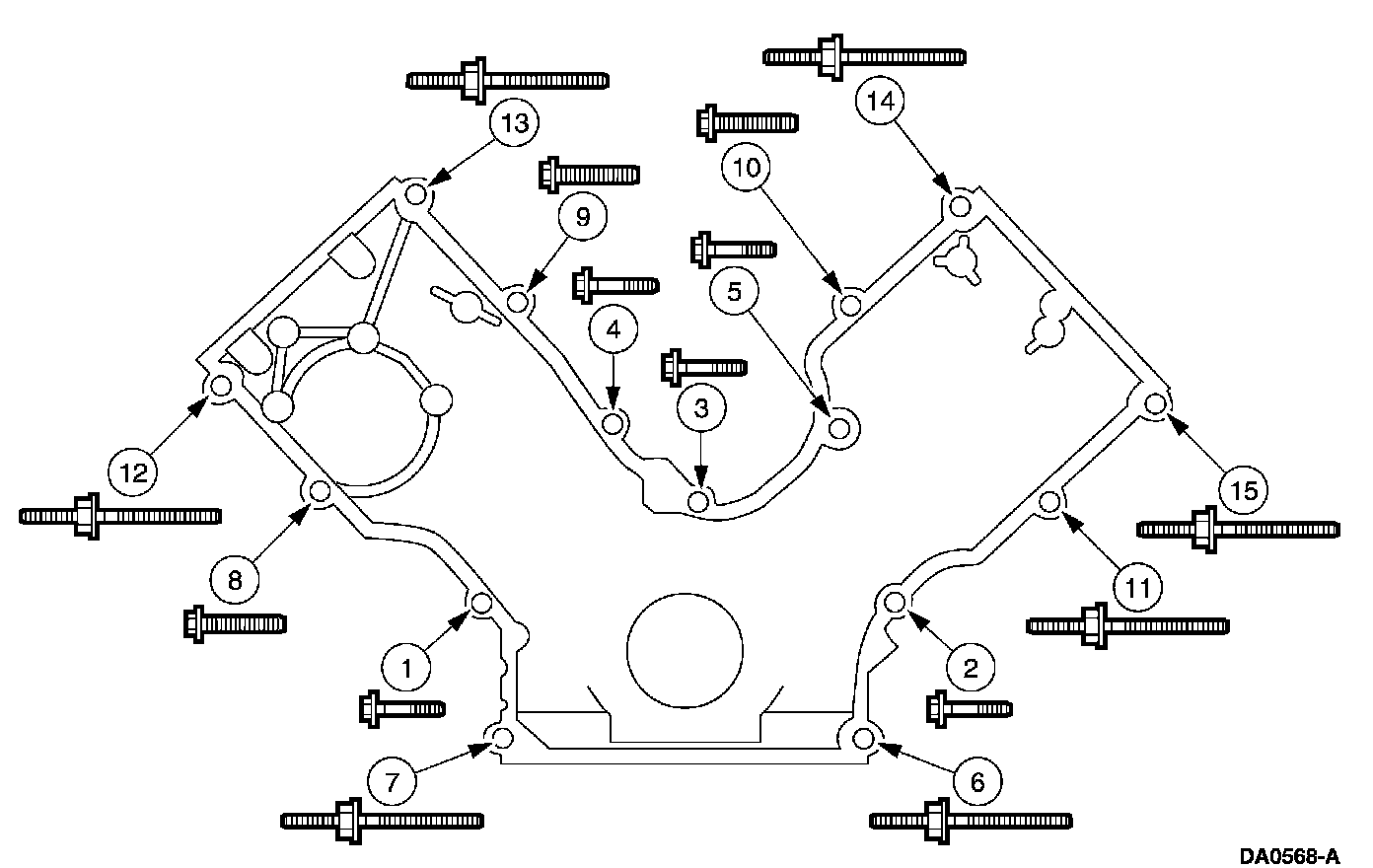 Stage 3: Tighten fasteners 8 through 15 to 48 Nm (35 ft. lbs.).