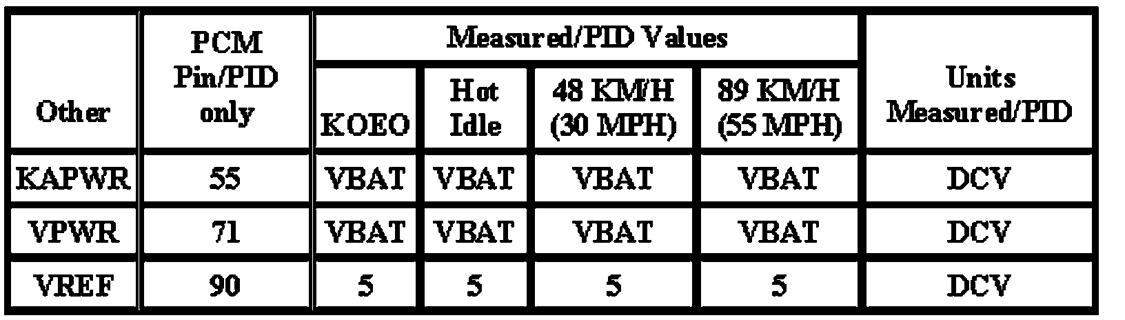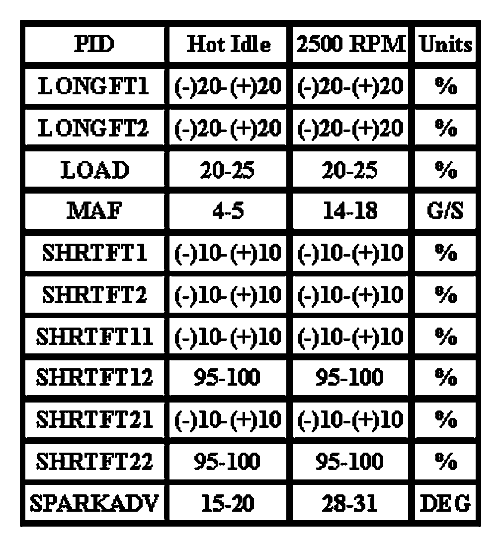 Note: All generic OBD readings under no load (PARK or NEUTRAL).