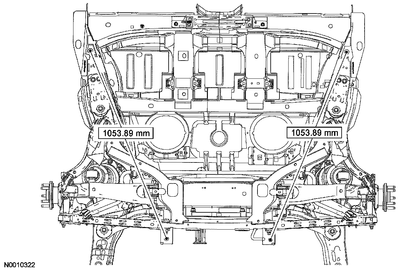 2. With a wax pencil, mark the relational alignment of the rear subframe to the underbody at the mounting locations.