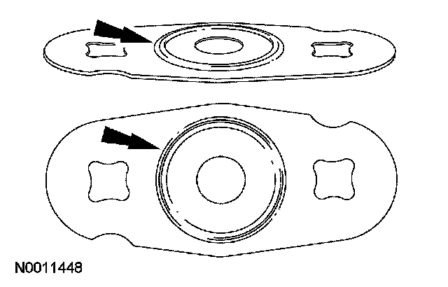 5. NOTE: When installing the EGR system module, install a new EGR system module gasket with the side with the raised ring facing the intake manifold.