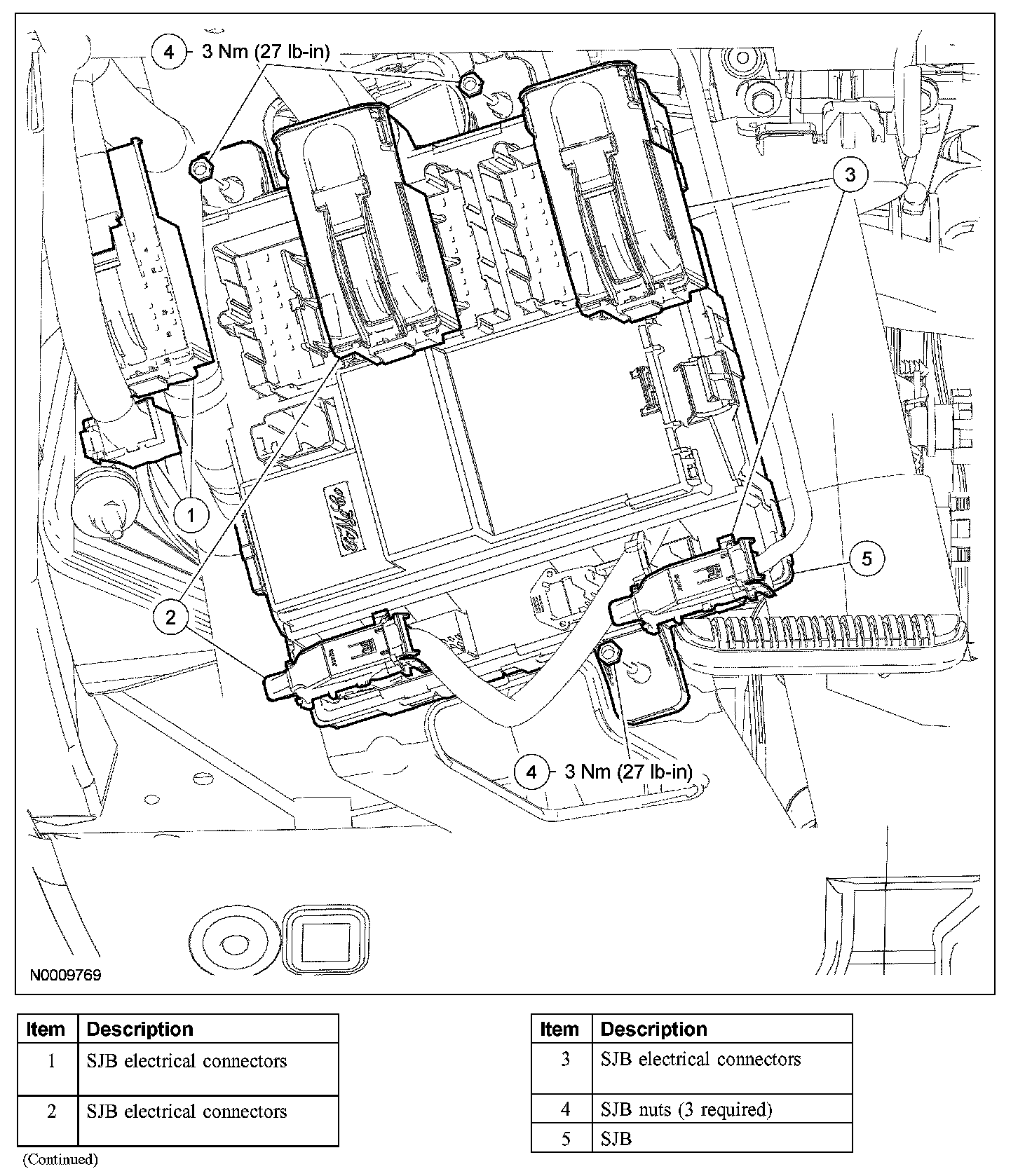 3. Disconnect the SJB electrical connectors.