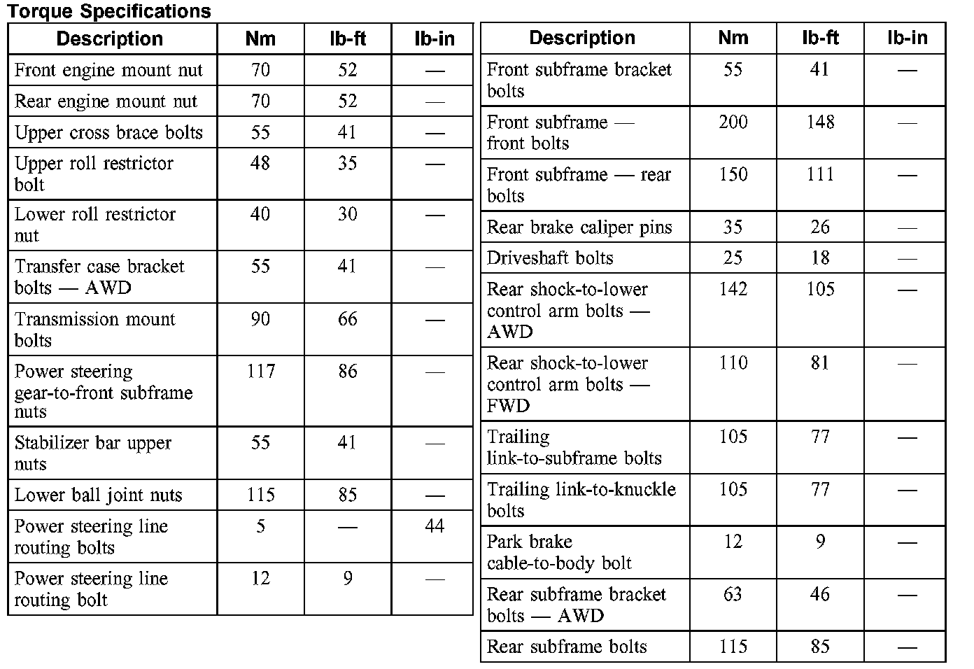 Torque Specifications: