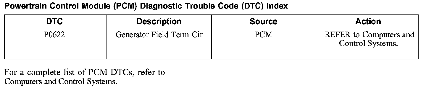 Powertrain Control Module (PCM) Diagnostic Trouble Code (DTC) Index