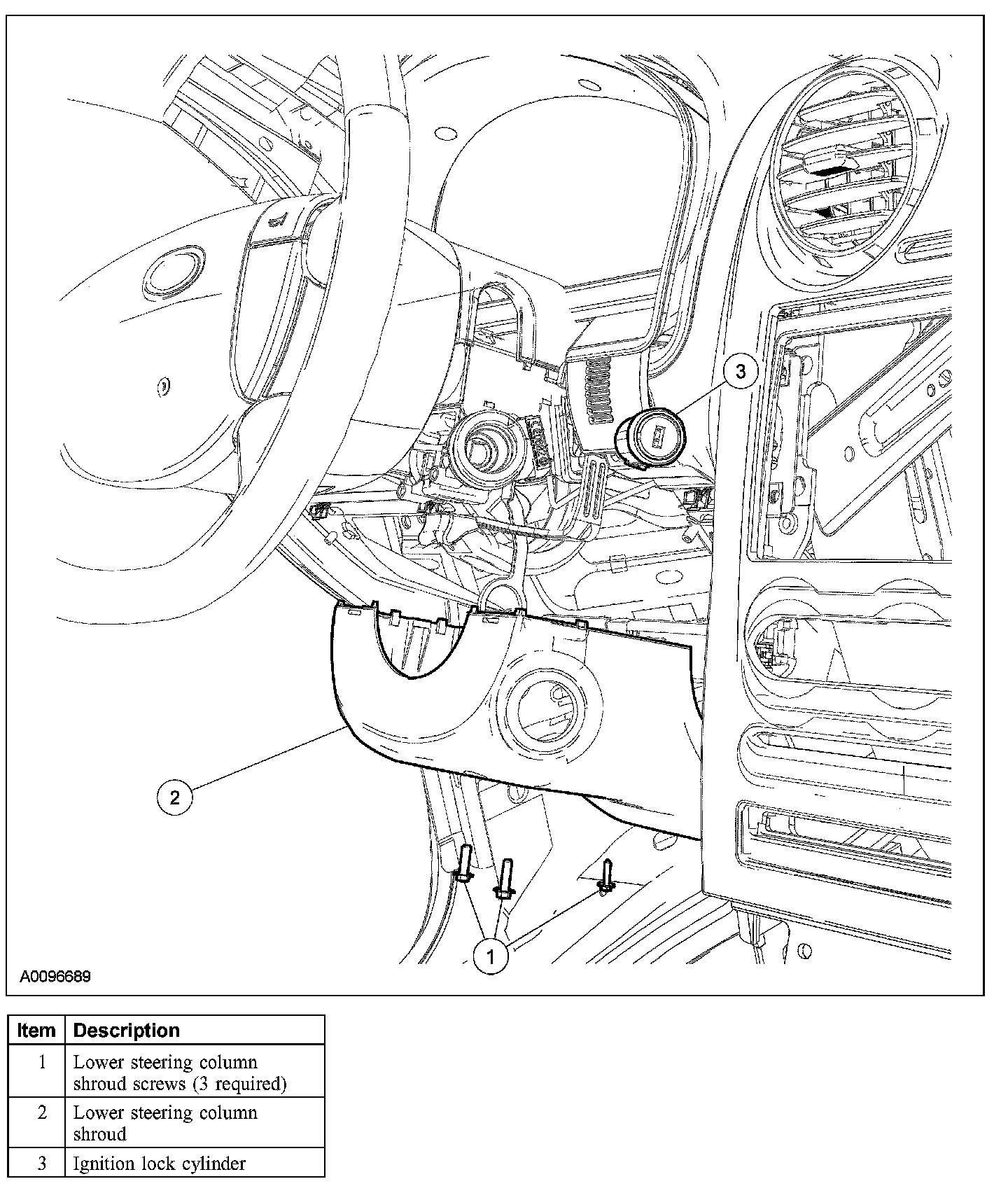 3. Remove the 3 lower steering column shroud screws.