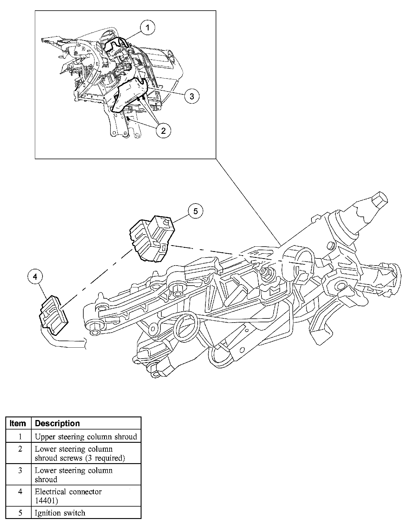 2. Remove the upper steering column shroud.