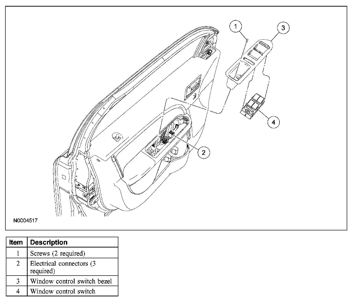 1. Remove the window regulator control switch bezel.
