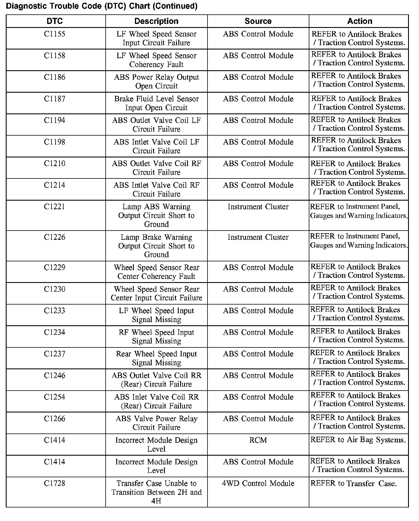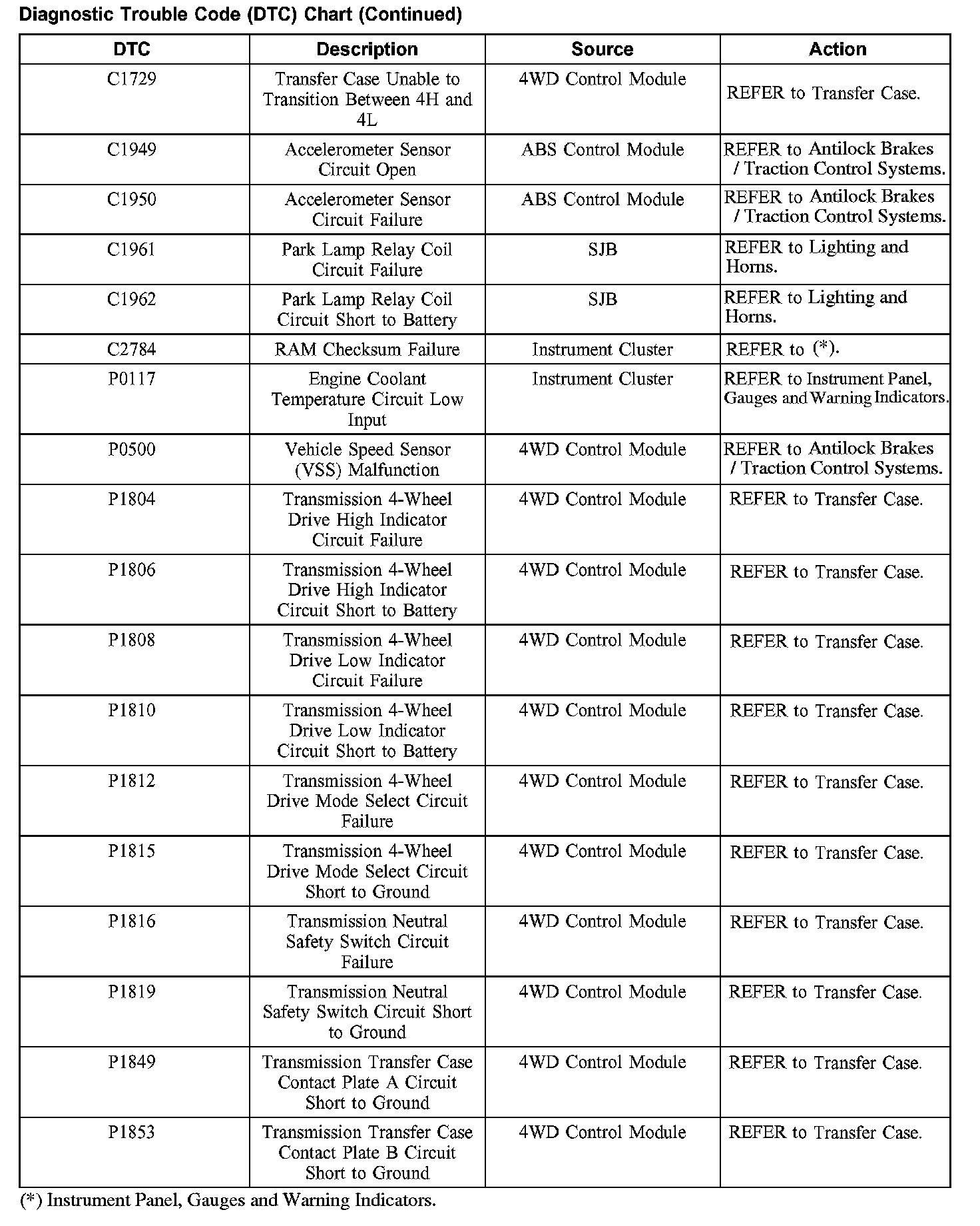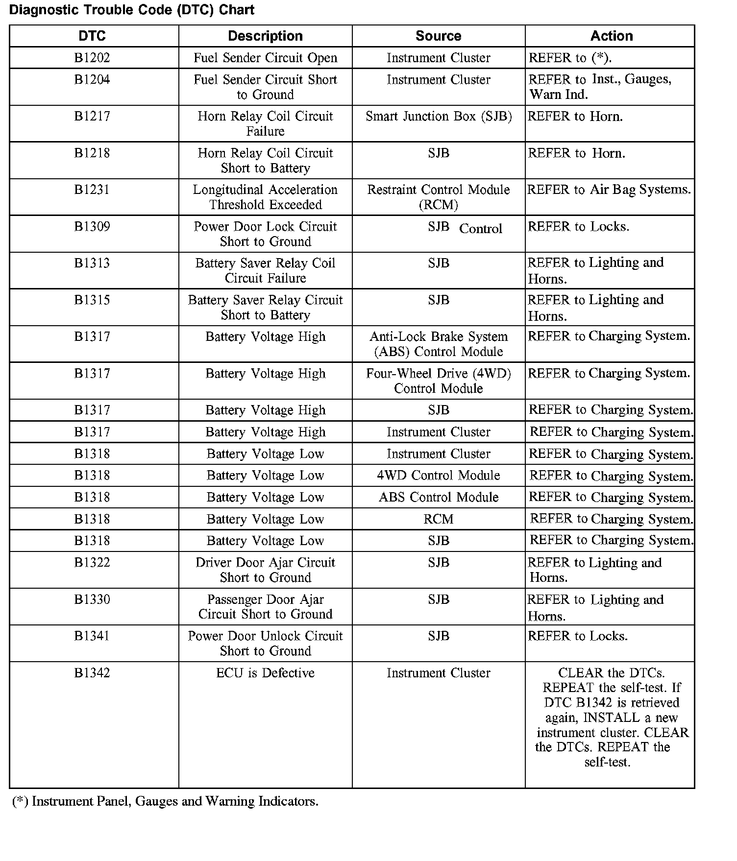 DIAGNOSTIC TROUBLE CODE (DTC) CHART